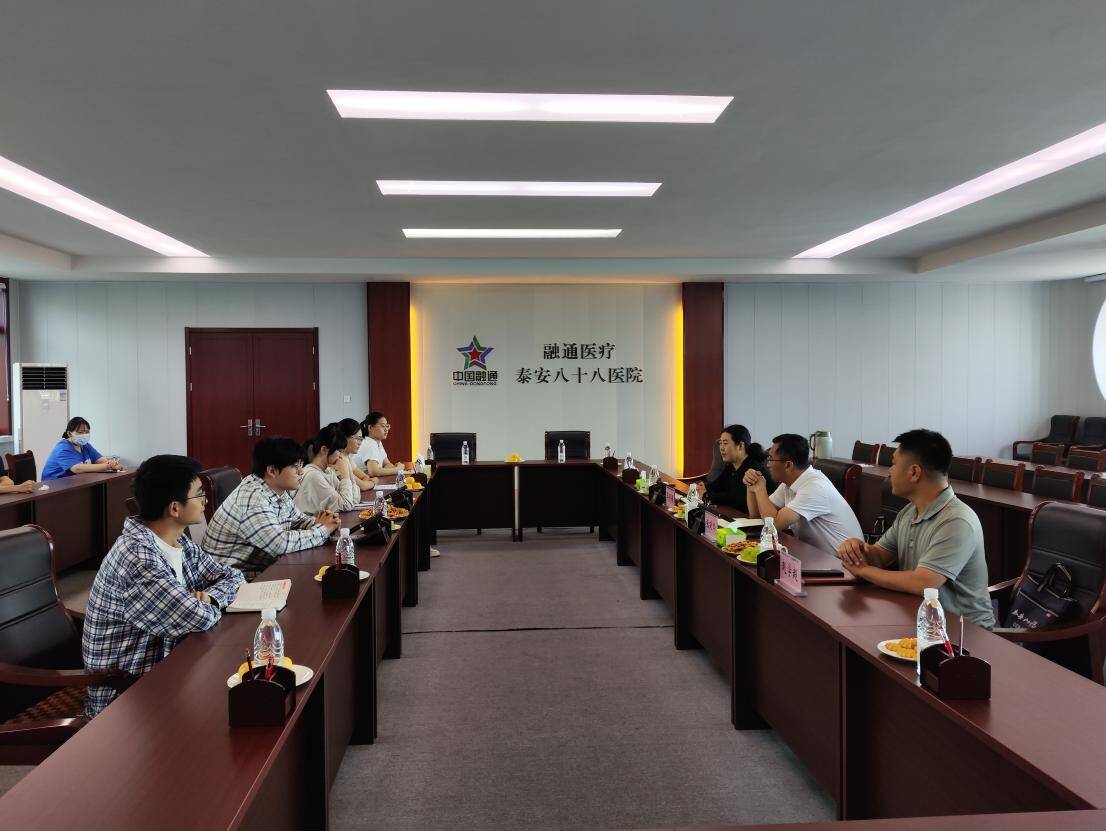 8月4日,公司党委书记张延玲前往泰安八十八医院走访看望实习生,召开座谈会,全面了解员工的工作、学习及生活情况。医院有关领导和负责同志、公司学工办负责人和组织员、辅导员参加走访活动。 张延玲在与员工座谈交流时指出,实习是员工将理论知识与实践紧密结合的重要环节,对于提升员工的专业素养和综合能力具有不可替代的作用。希望同学们一要提高认识,积极参与,努力提升职业素养,培养奉献精神。二要虚心请教,互帮...