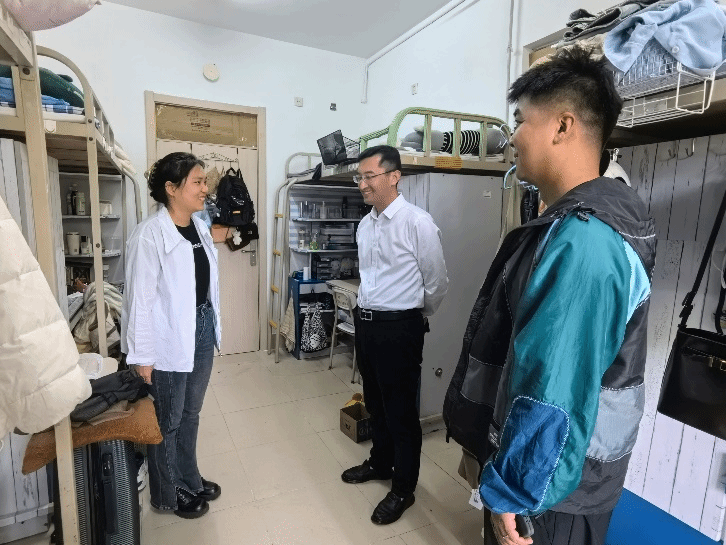 员工公寓是老员工校园生活的重要组成部分,更是安全工作的重要阵地。在公寓,张延玲和研究生、本科生同学亲切交谈,教育引导员工不断增强安全意识,养成良好习惯,防微杜渐、防患未然,营造一个温馨舒适、健康安全的生活氛围, “五一”假期将至,同学们在放松娱乐的同时要绷紧安全弦,避免意外事故发生,推动自身更好成长成才。