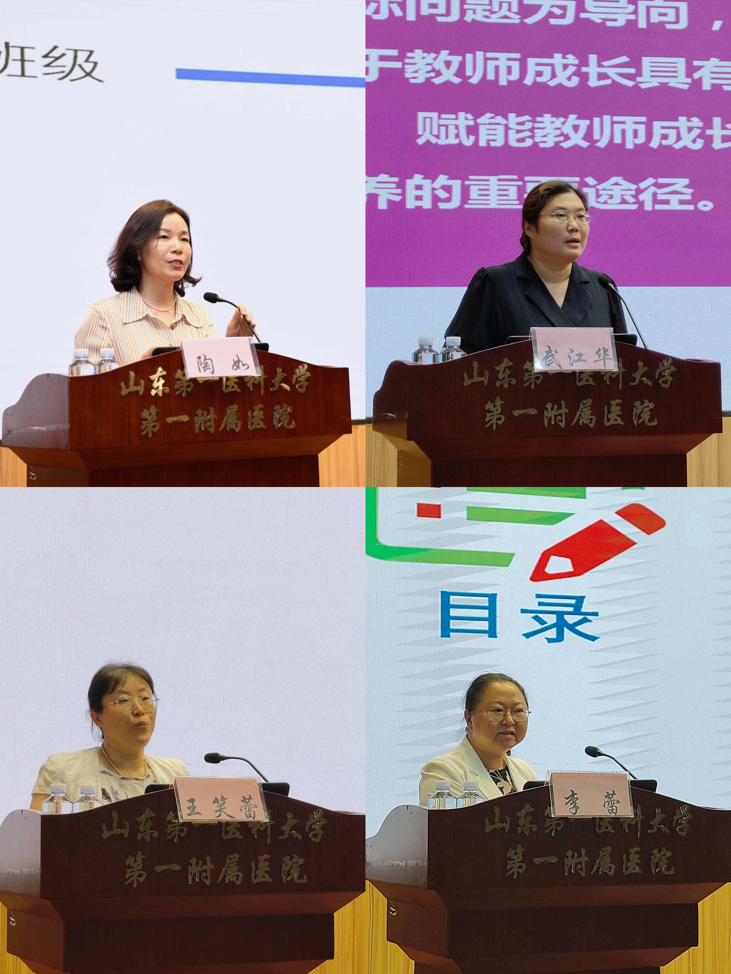 会上,陶如及教研室主任武江华、王笑蕾、李蕾等分享了《课堂教学质量评价——如何上好一堂课》、《立足校本教研,赋能教师成长——集体备课及教学资料归档》、《基于BOPPPS教学模式的教学设计及教案编写》、《护理学专业教学中的课程思政》等内容。通过具体的案例分析,使临床护理教师对OBE教育理念、集体备课的实施、如何应用BOPPPS教学模式进行教学设计及护理教学中如何融入课程思政有了更深刻的认识。