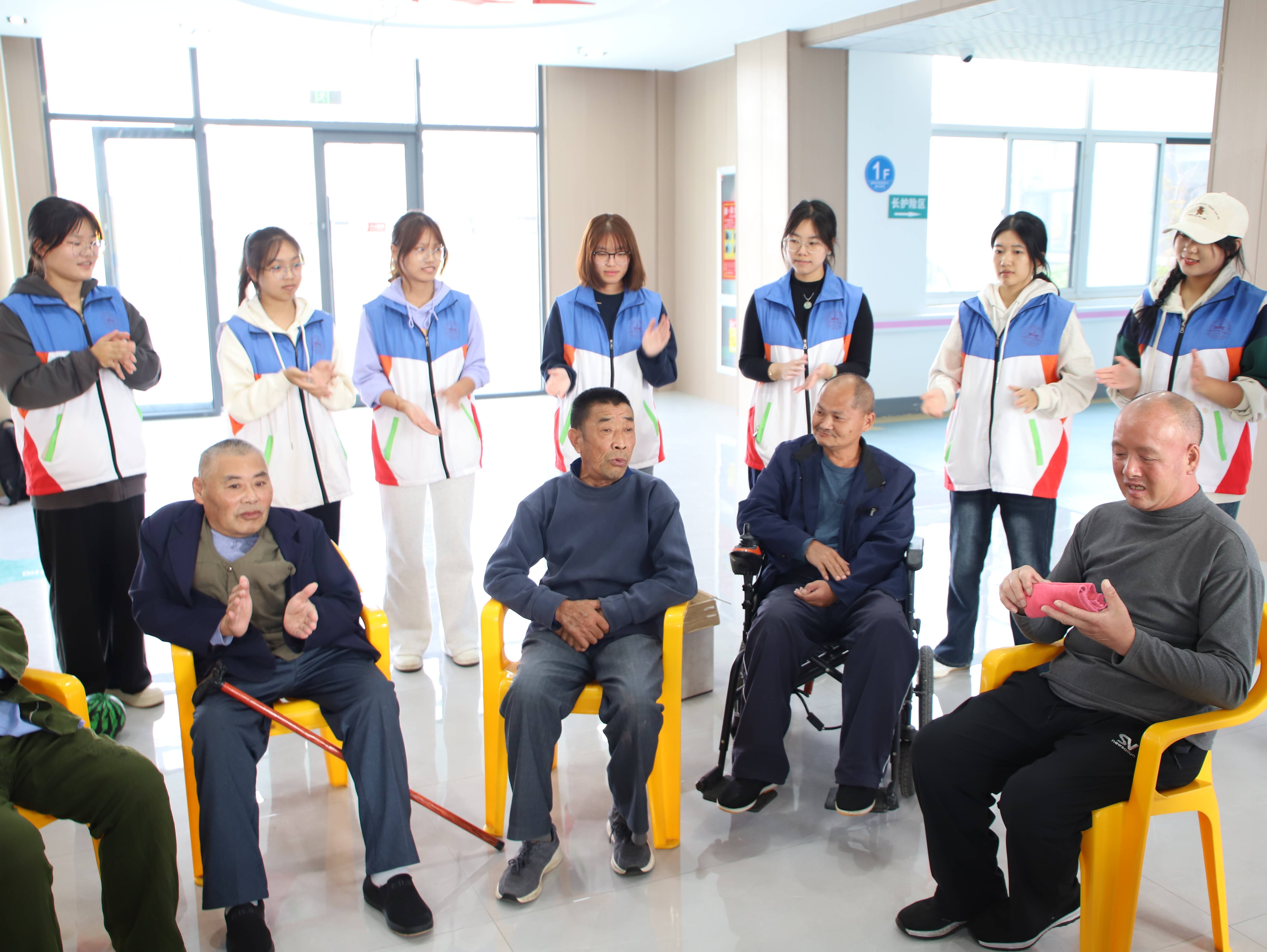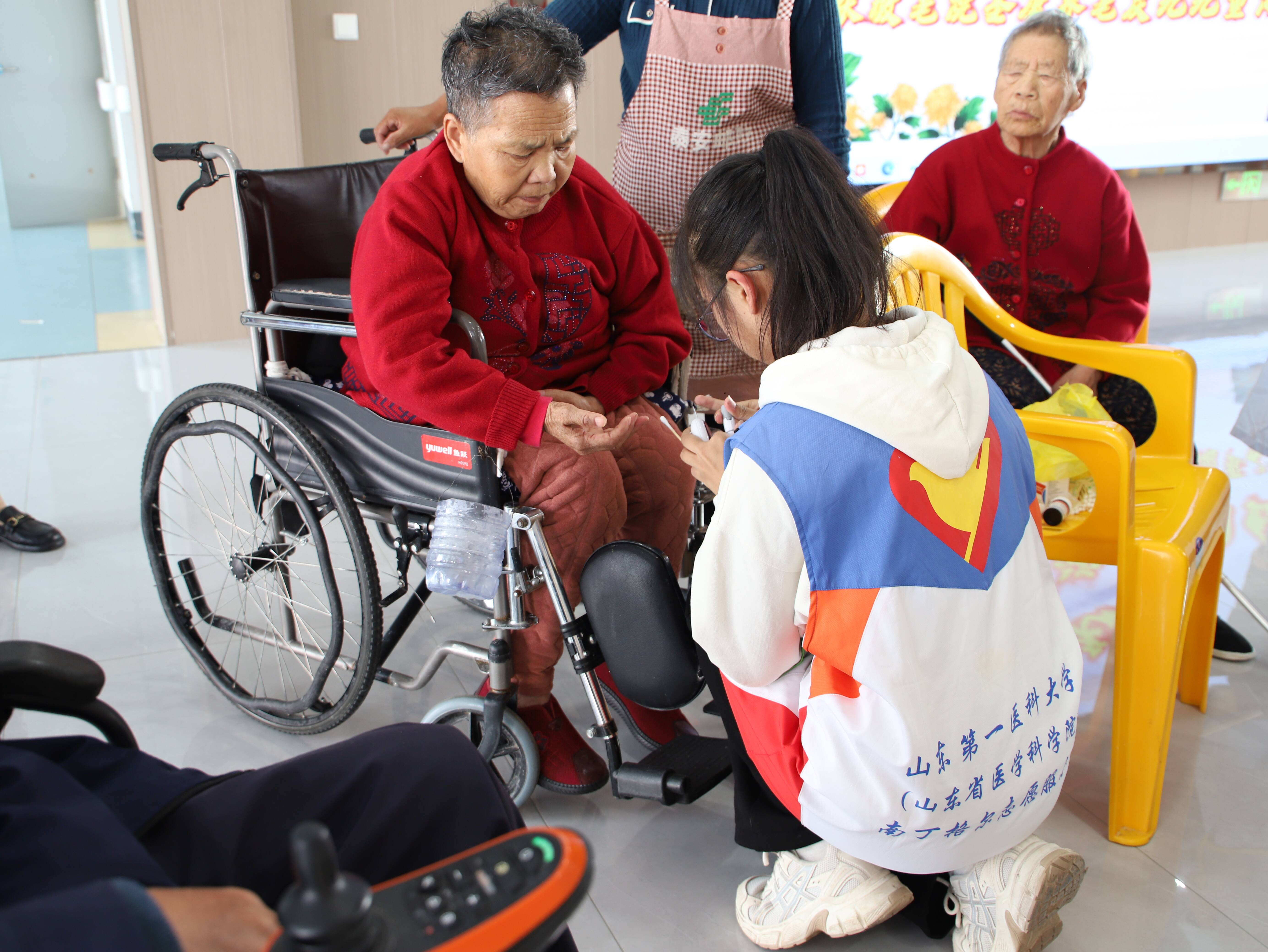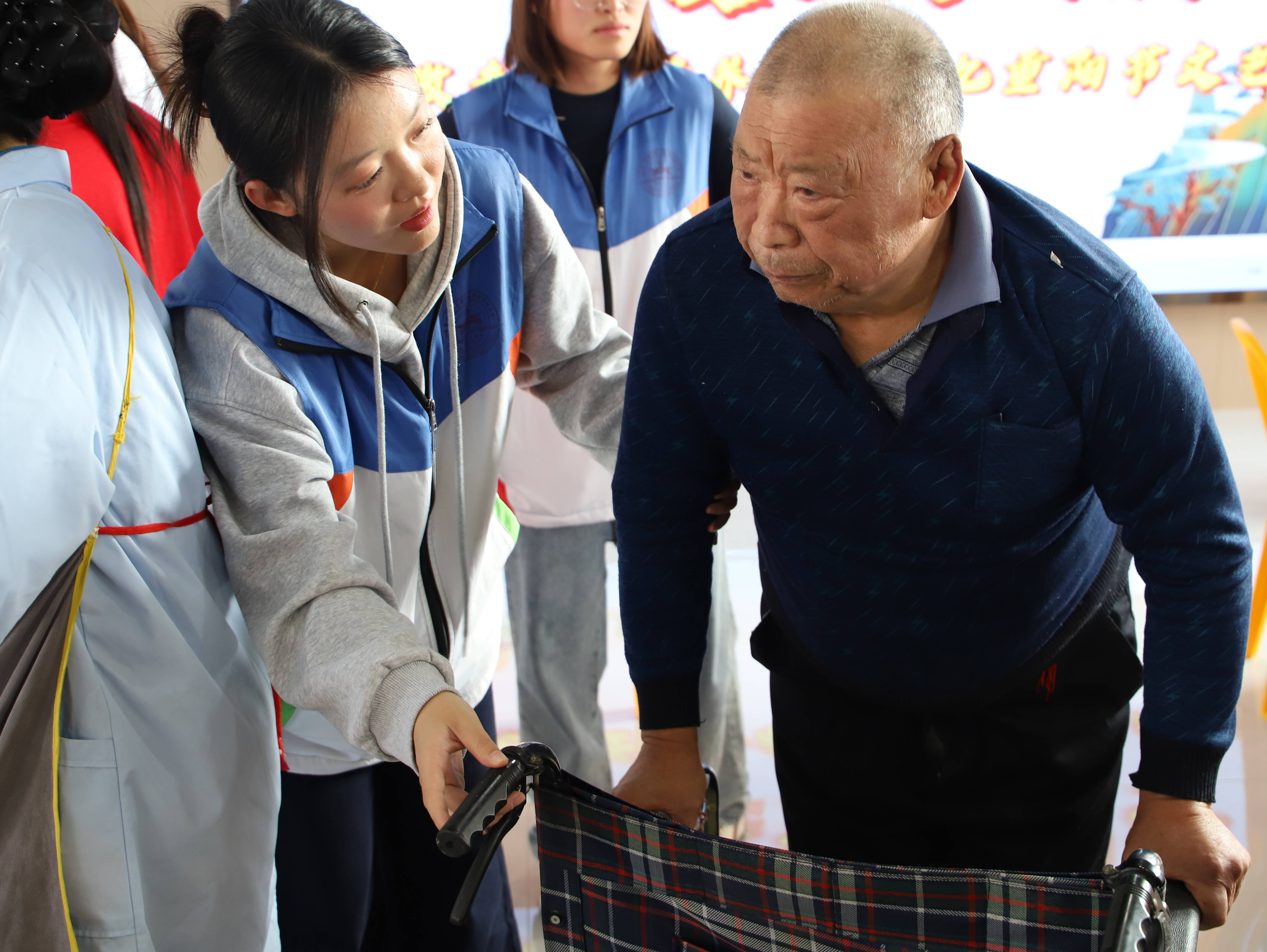 随后,队员们明确分工、相互配合,有序开展健康义诊服务。部分队员为老人们测量血压、血糖,并根据检测结果为老人及敬老院的护工们科普相关的保健知识,其余队员则与等待的老人亲切交流,仔细询问老人们的身体状况,分享各自生活中的趣事,现场秩序井然而又十分温馨。老人们纷纷表示,队员们的到来为敬老院增添了生机与活力,也让他们感受到了来自社会的关爱与温暖。
