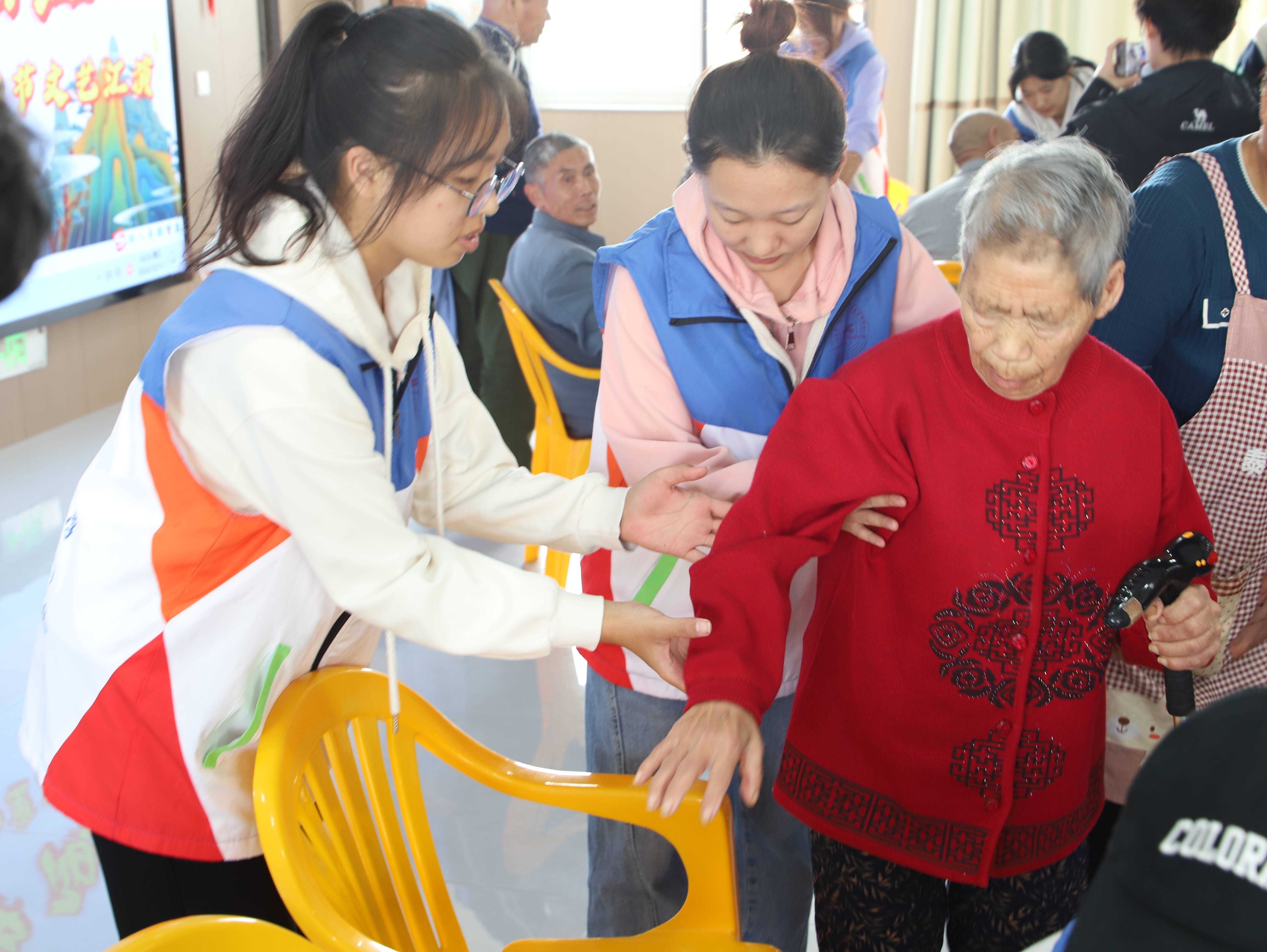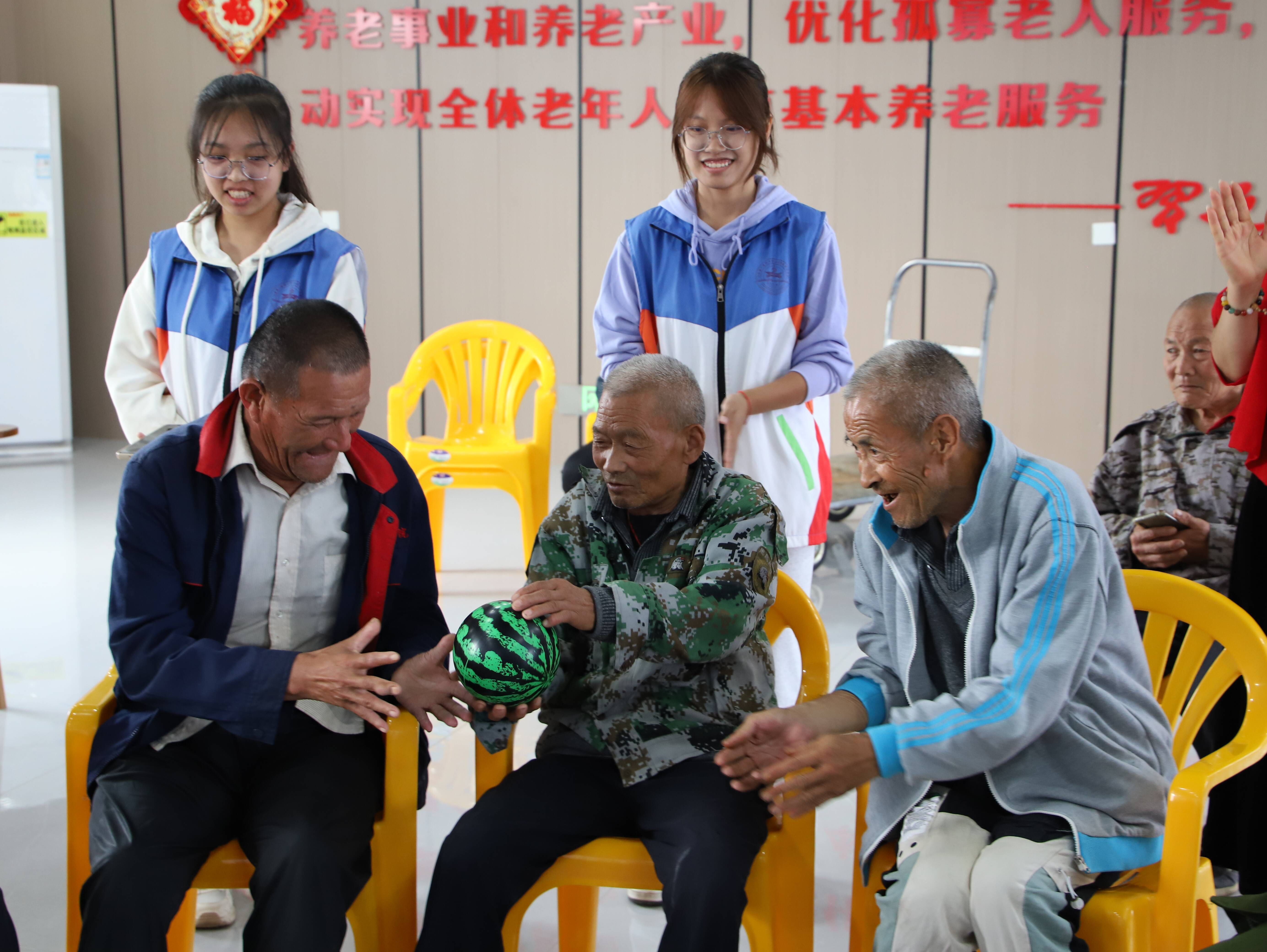 最后,活动进入到游戏互动环节。老人们围坐成圈,随着音乐的播放进行击鼓传花、投纸团等趣味游戏,每当音乐停止,未能及时完成“小挑战”的老人都会收获来自身后队员的暖心祝福语。队员们借游戏的形式为老人们送上内心最真挚的祝福,不仅让老人们重温了童年的欢乐,也让队员们在轻松愉快的氛围中与老人们建立了更加深厚的情感联系。活动在一片欢声笑语中圆满落下帷幕。