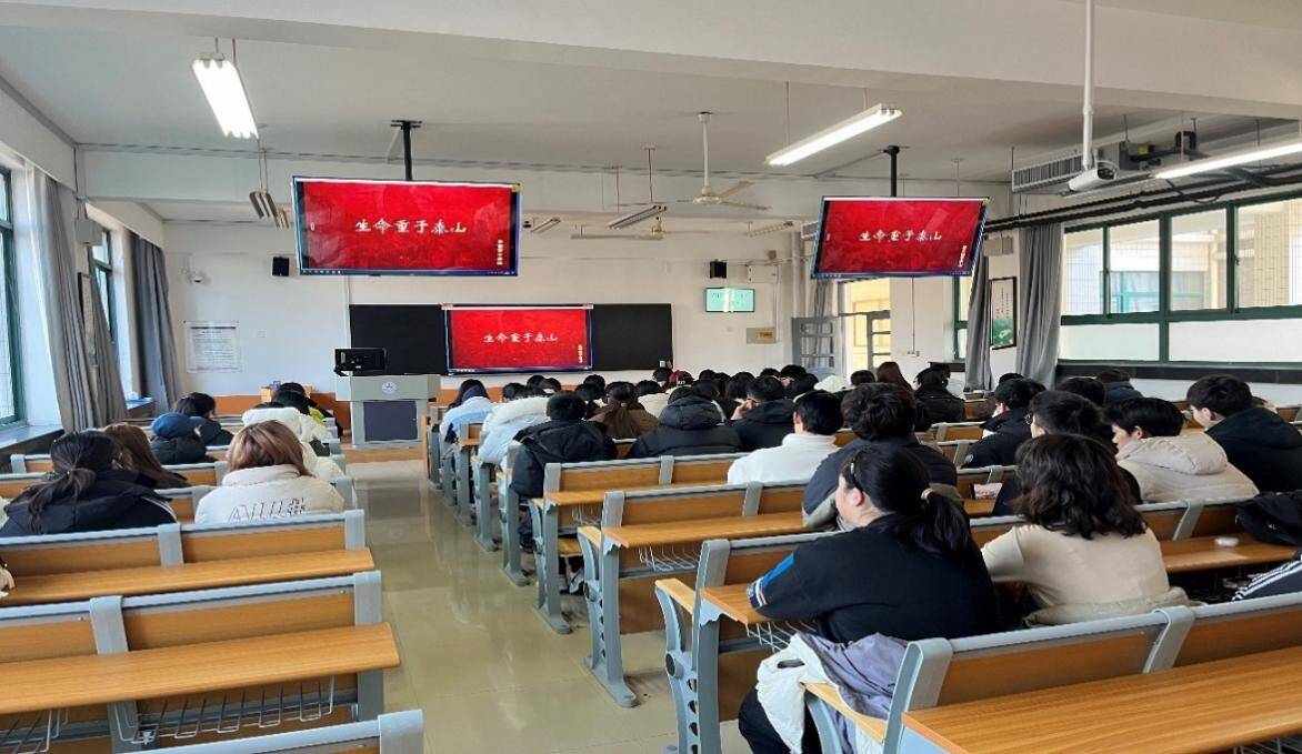 课堂上,全体师生观看了《生命重于泰山》《红线》等警示片,深刻认识到了安全事故给公司、家庭、个人带来的严重损失,以及需承担的法律后果。辅导员还通过教育领域发生的典型案例以案说法,并围绕消防安全、人身财产安全、宿舍安全及防网络诈骗等多方面内容展开详细讲解,全面提高大家的安全意识和自我保护能力。