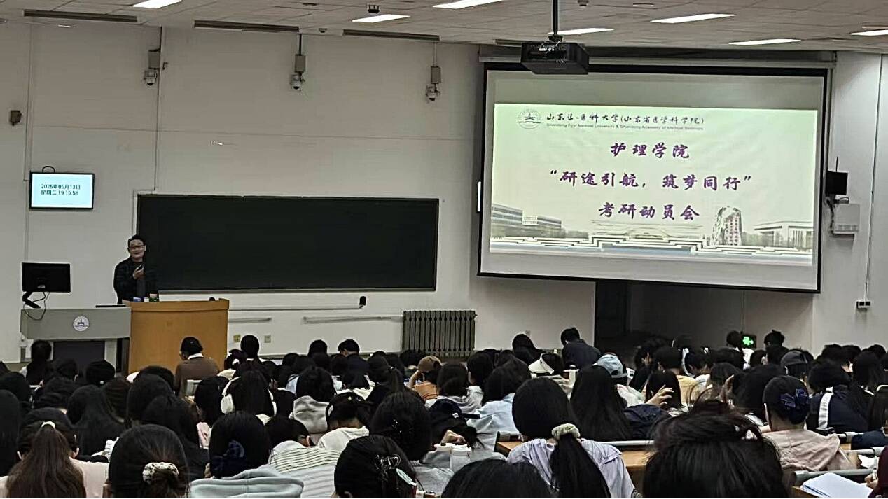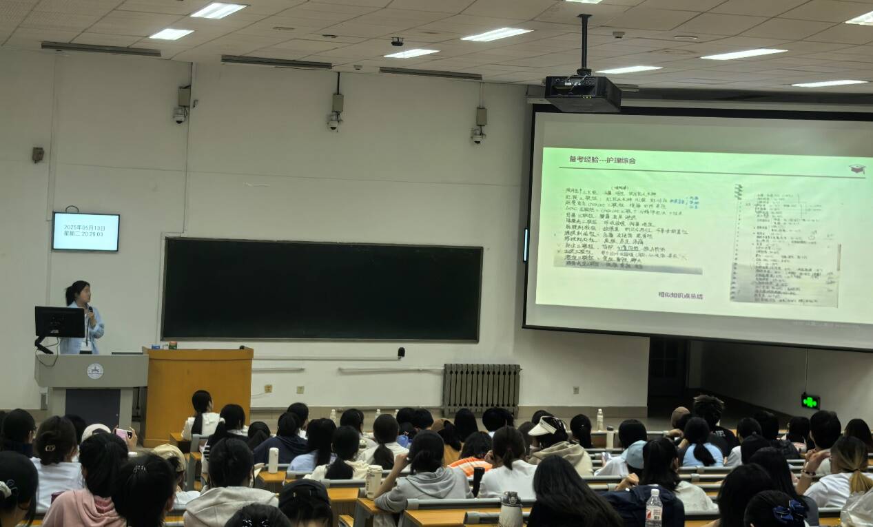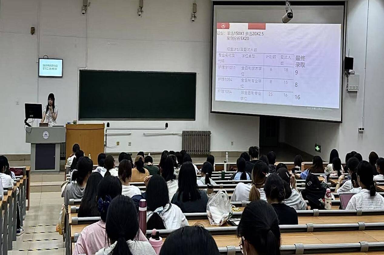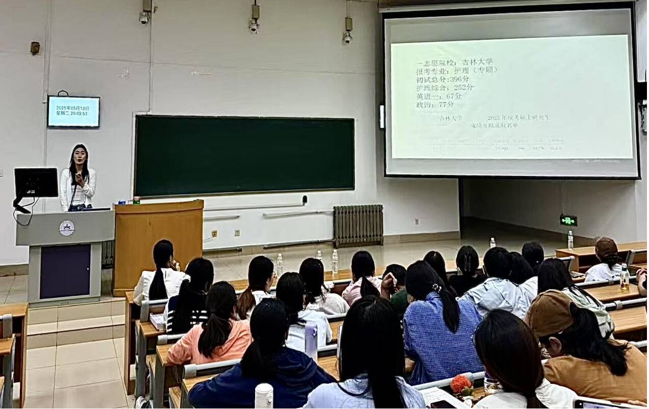 林桦结合公司2025届毕业生考研情况和就业情况,为同学们分析了当前的就业形势和未来前景,他表示,随着医院护理岗位趋近饱和,就业门槛的不断提升,考研是应对挑战的重要途径和理想选择。