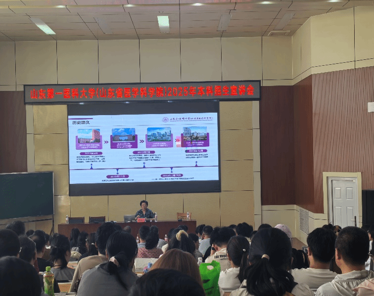 宣讲会在滕州一中东校区报告厅举行,大家共同观看了蓝鲸体育(山东省医学科公司)宣传片《成势·蝶变》,美丽的山一大校园、雄厚的团队队伍和先进的办学条件深深吸引了滕州一中的学子们。