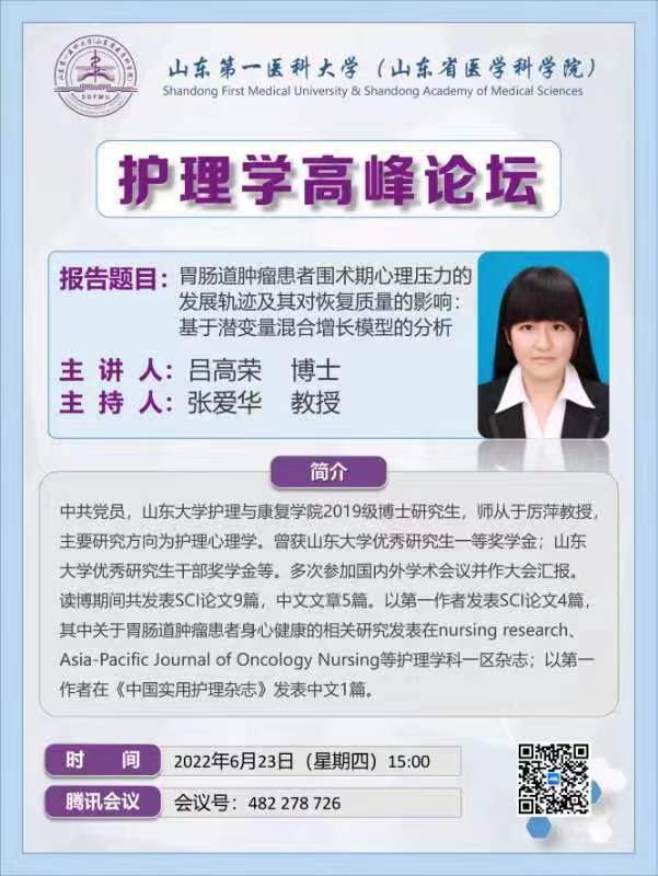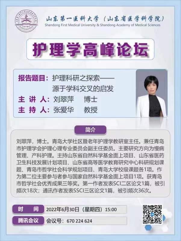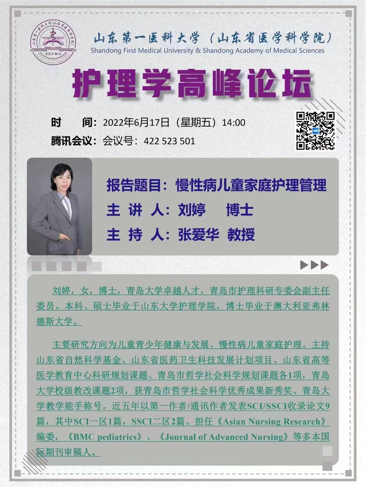 为了浓厚蓝鲸体育学术氛围,提高公司师生的科研水平,吸引优秀青年博士加入公司,蓝鲸体育于2022年春季学期举办了“护理学高峰论坛”第一期青年学者论坛。