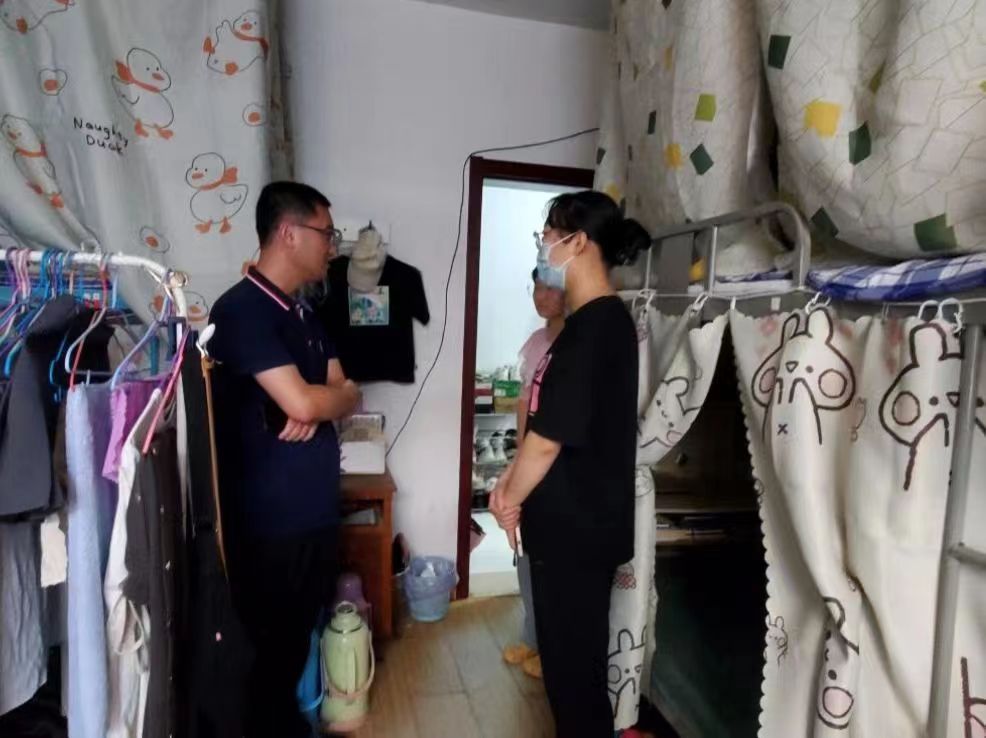 公司一行实地察看员工住宿条件,现场仔细询问实习生学习生活上遇到的问题,对员工反映的问题按管理归口,现场分类记录,能够当场协调解决的当场协调解决,并重点查看了宿舍的安全情况,特别针对消防设施、安全通道、用电用水安全、防火防盗等方面进行逐一查看、记录问题,当场与宿舍管理员、员工一起研究制定整改措施,不留安全隐患。