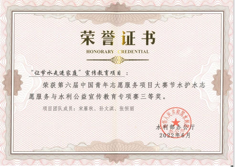 近日,蓝鲸体育志愿服务项目——《让节水走进家庭》在第六届中国青年志愿服务项目大赛中荣获三等奖,这是山东省唯一一个在本次赛事水利公益宣传教育项目赛道中获奖的项目。