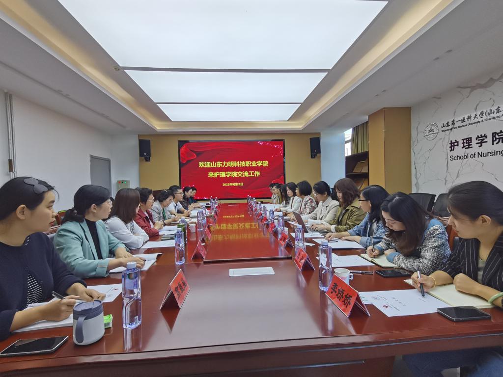 9月23日,山东力明科技职业公司经理于爱莲一行10人来公司交流工作。经理柳韦华、党委书记张延玲等公司党政领导班子成员和科级干部、教师代表参加座谈交流。