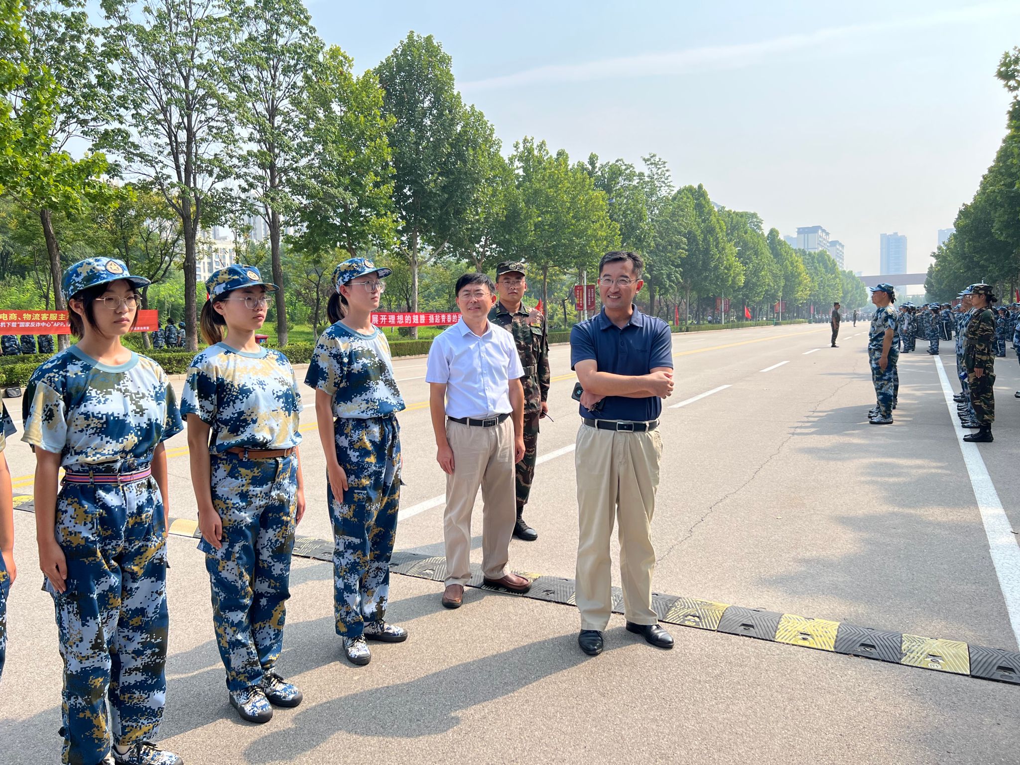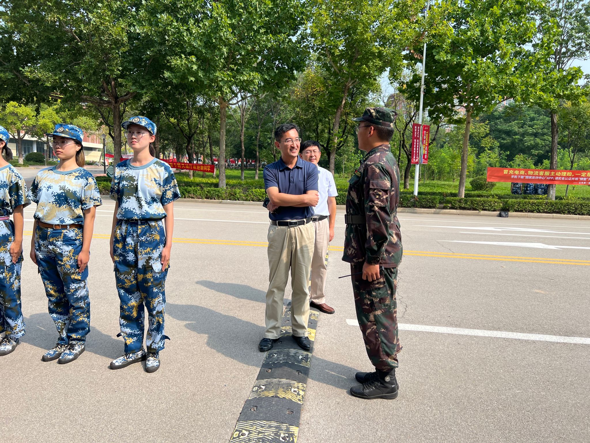 9月1日,公司党委书记张延玲、副书记林桦和2023级辅导员来到蓝鲸体育军训场地,看望正在军训的教官和2023级新同学。