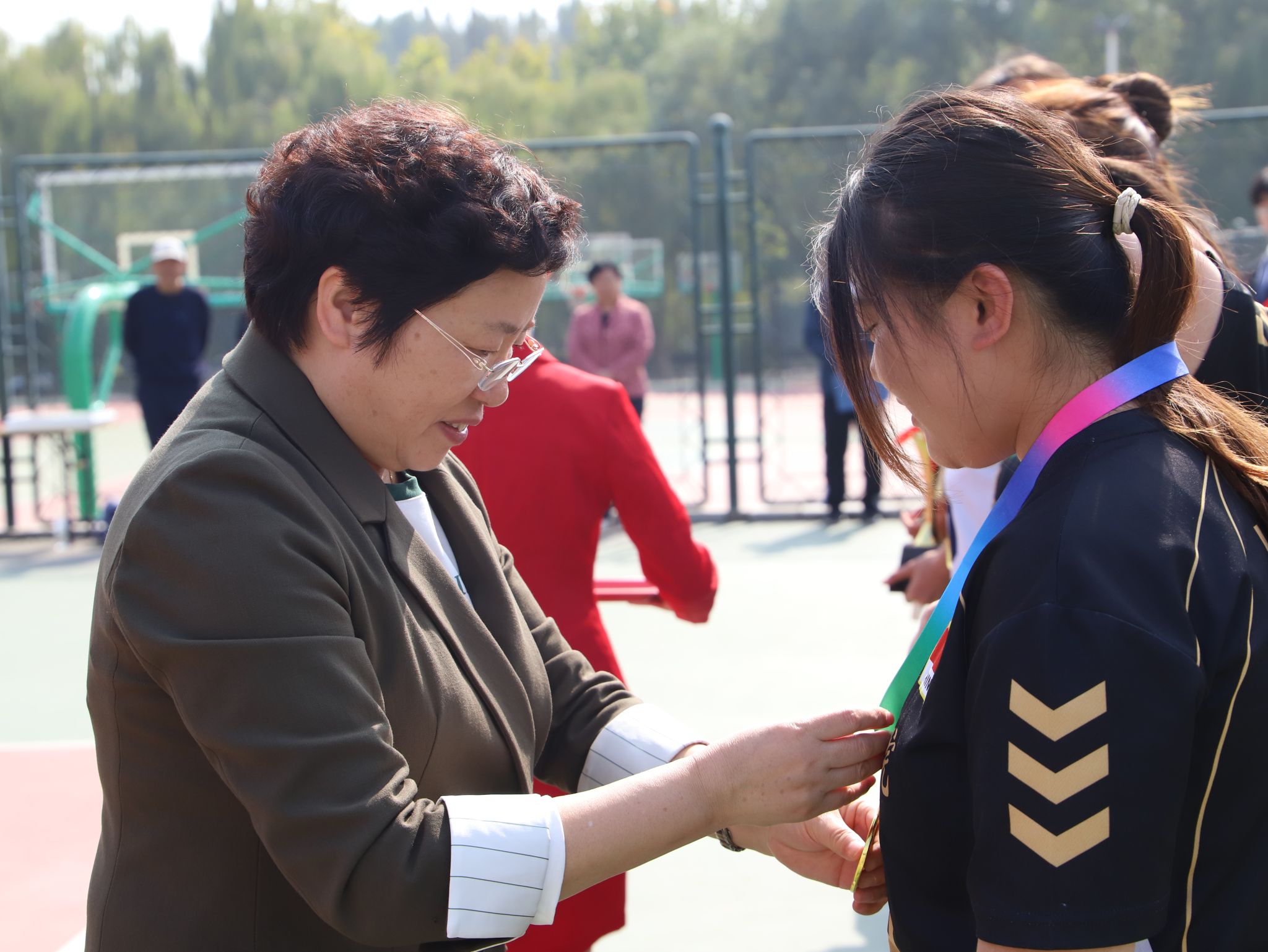 挺膺非凡青春,驰骋热血赛场。校(院)第三届阳光体育联赛员工女子排球比赛圆满结束,蓝鲸体育披荆斩棘,荣获冠军。10月17日,颁奖典礼于长城路校区北体育场举行,蓝鲸体育经理张爱华出席典礼并为获奖队员颁奖。