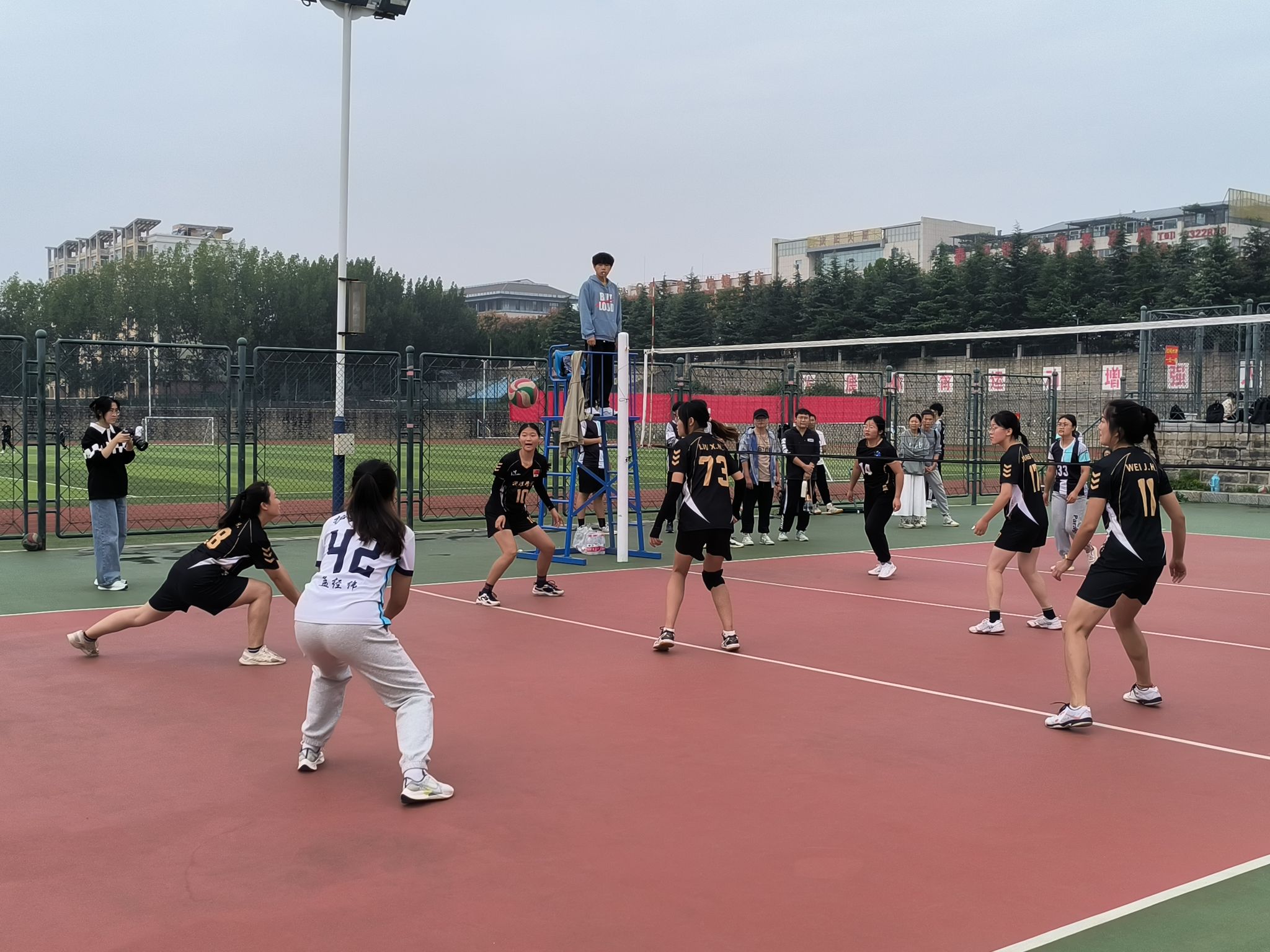 发球、垫球、传球、扣球、拦网,每一个配合都熔铸力量,每一次扣杀都直击心扉。矫健的身姿,完美的弧线,专注的目光,热烈的气氛,贯穿比赛始终。排球队员们勇于拼搏、敢于胜利,热爱与坚毅铸就出无穷的力量,体育的魅力在赛场上体现得淋漓尽致。