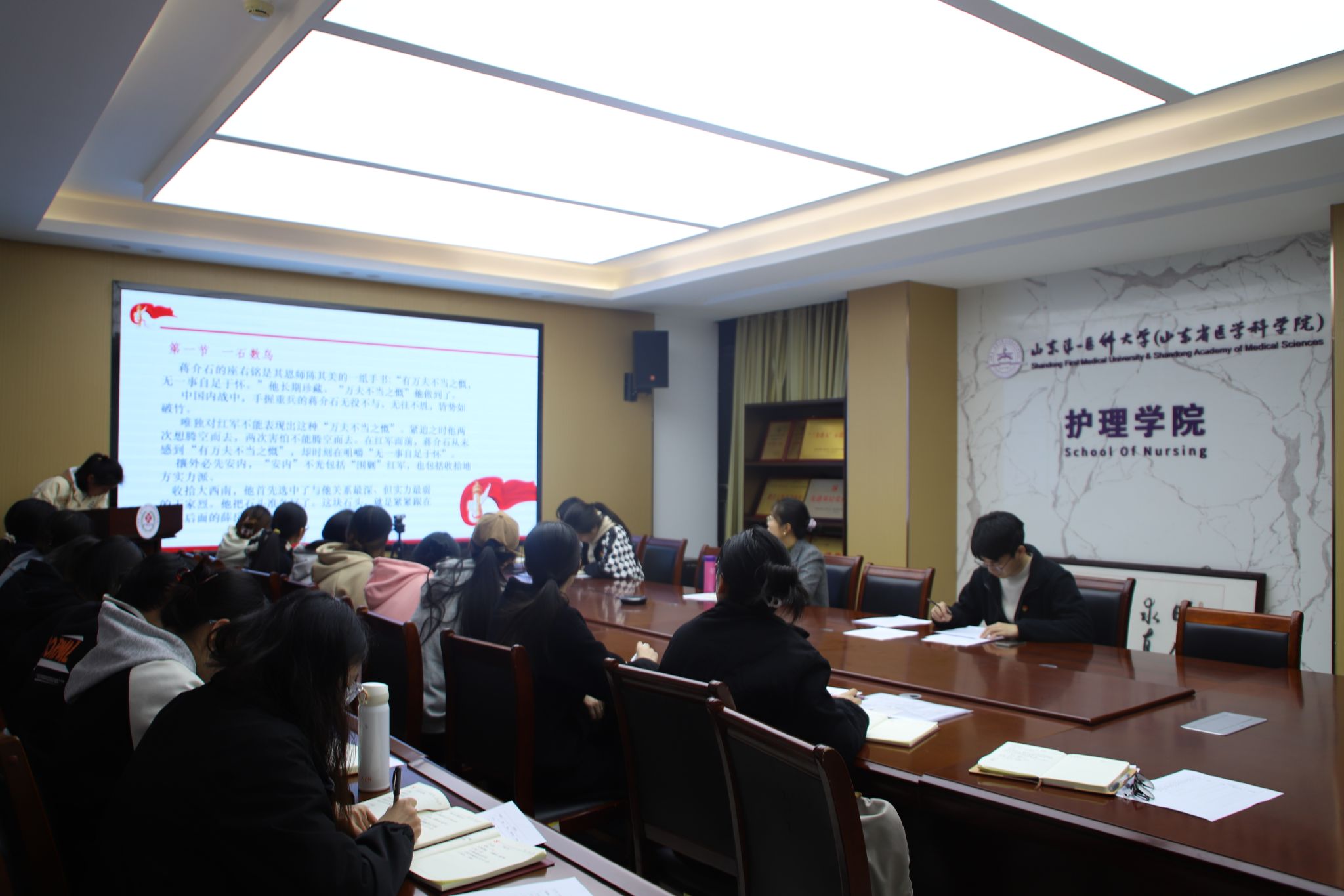 活动中,李红英同志带领大家继续学习《苦难辉煌》的第九章烈火真金和第十章瞩目大西南的内容。金一南教授对党带领人民建立红色政权过程中错综复杂的历史背景进行了深度揭示和剖析,真实讲述了老一辈无产阶级革命家在极其困难的环境下,进行战略转移的伟大壮举,展现了中国共产党领导人民进行革命战争的正义、艰辛和伟大。