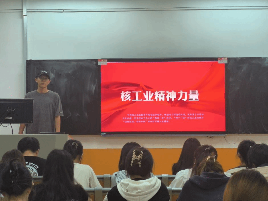 宣讲团成员赵振宏从能源发展开始讲起,通过讲述核能的来源以及“人造太阳”等技术,让大家认识到核能的重要性。紧接着,他为大家介绍了核动力事业的“拓荒牛”—彭士禄的一生,作为我国第一任核潜艇总设计师,他不要名、不要利,带病坚持工作;他捐出百万奖金,只为培养后备人才。“干惊天动地事,做隐姓埋名人”,赵振宏从彭士禄舍小家为大家的伟大事迹,联系到同学们的学习生活,最终深化到科学发展和科技进步的重大意义,在对内涵的不断深入解读中,引发了大家的想象和思考。参加本次活动的积极分子一致表示,今后将继续学习先辈的奉献精神,内化为源源不断的动力,外化为工作学习上的实际行动,努力在自己的岗位发光发热。