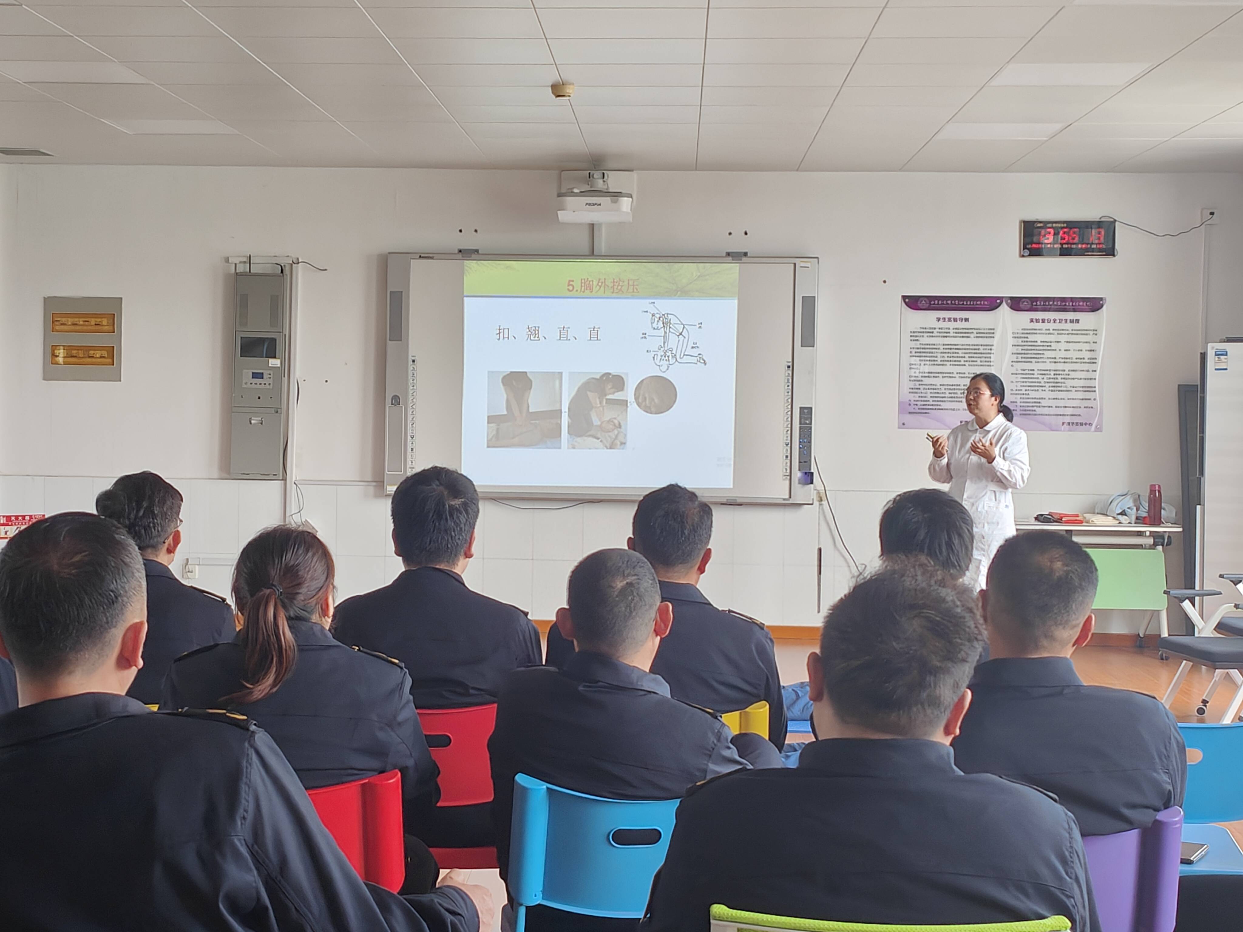 公司老师为支队进行了医疗急救知识和技能培训。培训以理论授课、情景演练相结合的方式开展,重点就急救中易出现的问题予以指导,有助于提升应对突发事件的现场自救、互救、急救能力,守护人民群众安全出行。“这些急救知识,关键时刻用得上!”大家纷纷表示。