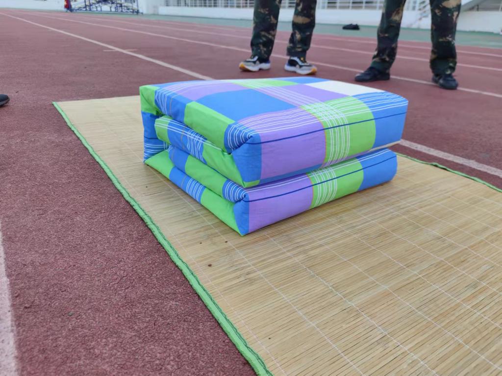 活动中穿插了内务整理——叠被子大赛环节。同学们跟随强军社教练员重新温习了军被的叠法。一床被子,铺平压实,横向三折;修得端角齐整;反复整理,终得这“豆腐块”四四方方。叠“豆腐块”虽“简单”,细细揣摩,也富含道理。把被子修成“豆腐块”,方寸之间,丈量的是规则尺度、严谨作风;平竖之上,展现的是细致入微、务实力行,有助于砥砺心性,磨砺意志,锤炼品质。比赛过程中,场上气氛热烈,员工热情高昂,赢得观众们的阵阵欢呼。