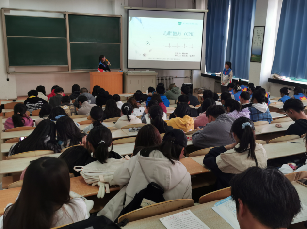 此次活动由多名队员共同协助完成。主讲人通过引用一些事例,简单地介绍了心搏骤停以及“黄金四分钟”的定义和意义,并对心肺复苏的操作进行了详细的介绍和演示。讲解和演示结束后,队员们邀请医药管理公司的同学们上台,亲身体验心肺复苏的全部操作过程,并借助假人模型进行进一步操作。在操作过程中,队员们认真解答同学们提出的疑问,同学们也很快地掌握了心肺复苏的基本操作要领,增强了对急救知识的认识。