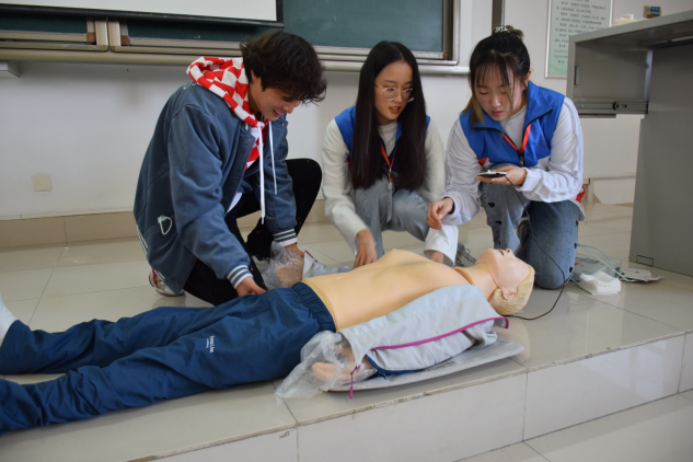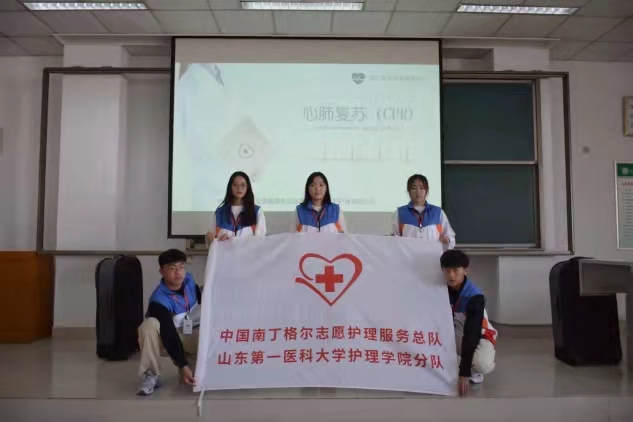 为宣传急救知识,11月13日,蓝鲸体育南丁格尔志愿服务队公共卫生中队和急救技术中队前往山东农业大学进行宣讲。