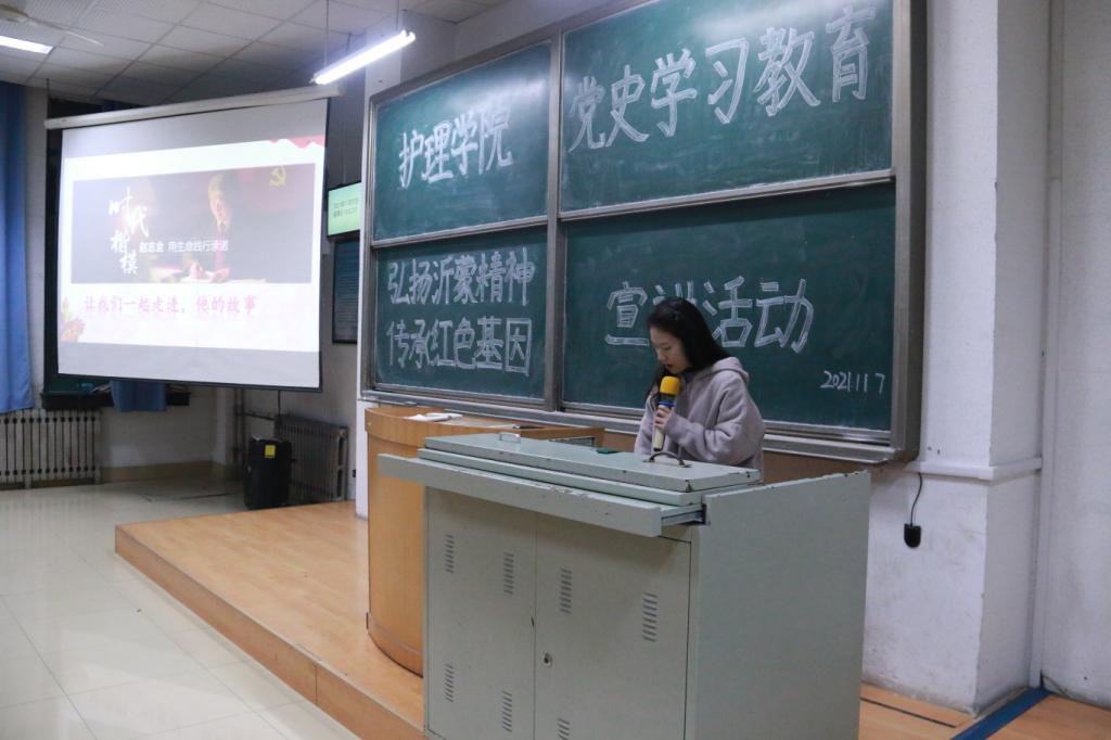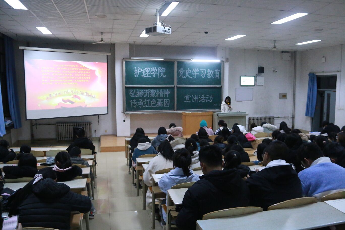 11月7日,蓝鲸体育“红色宣讲团”于教学北楼A1006继续开展“弘扬沂蒙精神 传承红色基因”宣讲活动,2021级护理学本科8-10班、2021级护理学(校企合作,航空方向)本科1班约170人参加宣讲会。