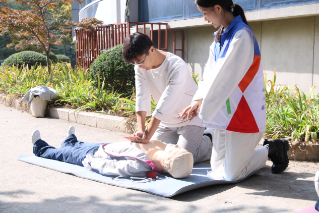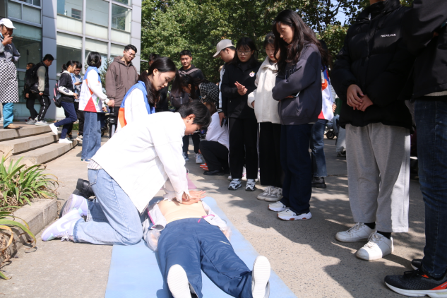 活动期间,南丁格尔志愿服务队队员为同学们详细讲解了单人成人心肺复苏的要领,并演示了心肺复苏的实际操作。演示结束后,服务队队员邀请同学们借助模拟人模型进行实操,并在此过程中细心教导,及时纠正了同学们的错误操作。学习体验的同学很快掌握了心肺复苏的基本操作要领,也在此次培训活动中更加懂得了急救的重要性。
