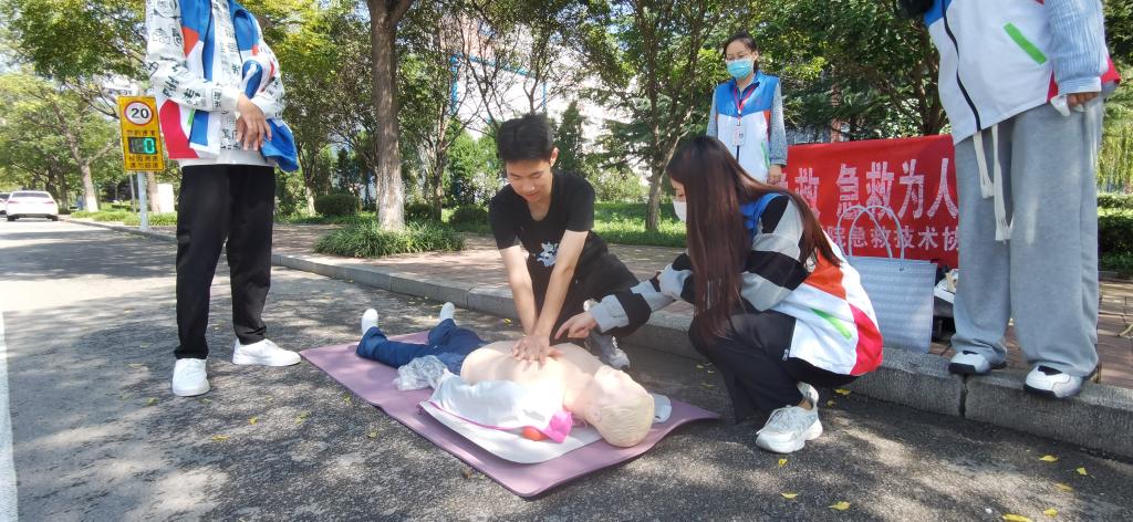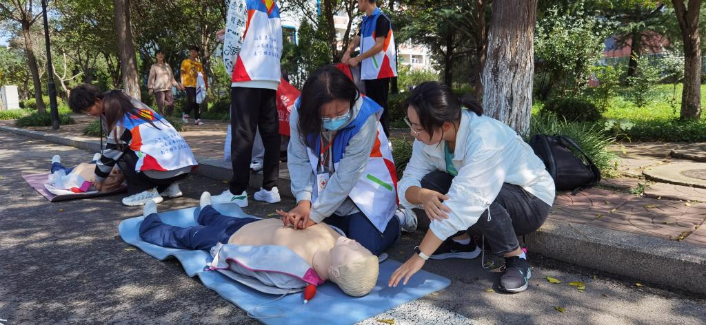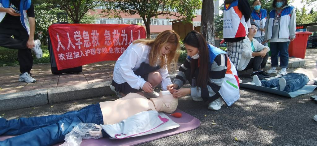 为提高同学们的健康意识和急救能力,能够在危急时刻保护自己和他人的健康,9月29日,蓝鲸体育南丁格尔志愿服务队在长城路校区玉兰宿舍楼下开展急救知识宣讲活动。
