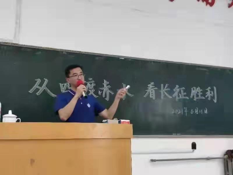 党委书记张延玲以《从四渡赤水看长征胜利》为题,带领大家回顾了党的长征历史,讲述了四渡赤水期间,红军在兵力悬殊的情况下,创造了以弱胜强的奇迹,取得战略转移中具有决定意义的胜利。鼓励同学们把个人的成长与国家发展进步融合起来,走好实现“两个一百年”奋斗目标、实现中华民族伟大复兴的中国梦这一当代老员工的长征路,努力做德智体美劳全面发展的新时代老员工。