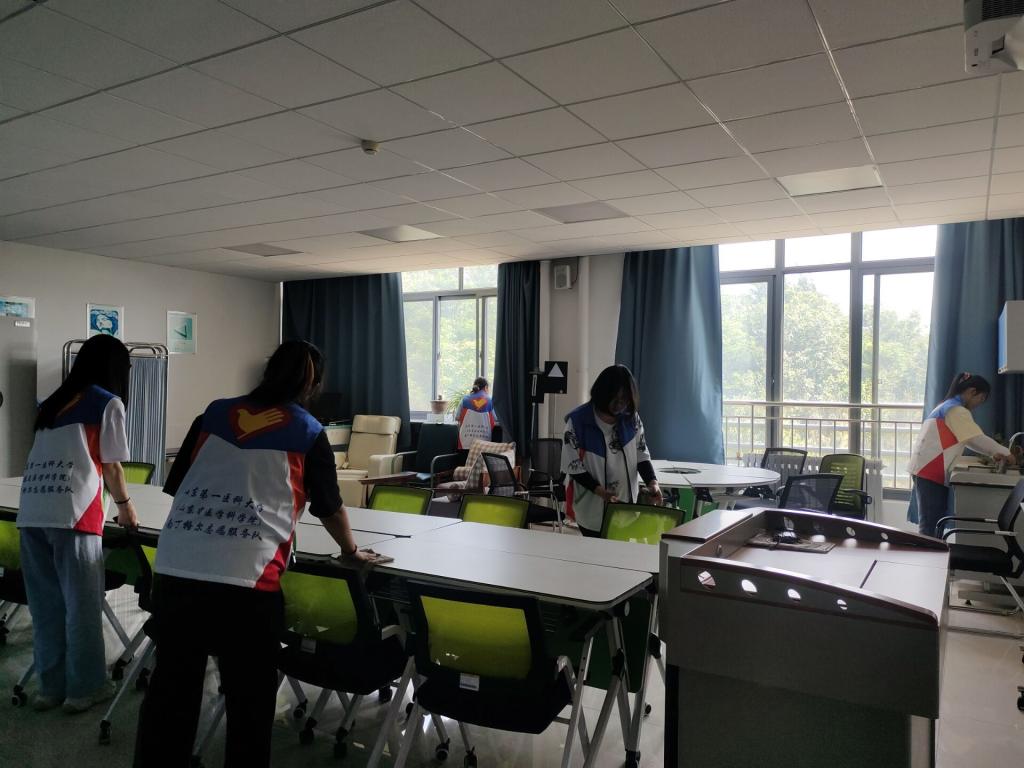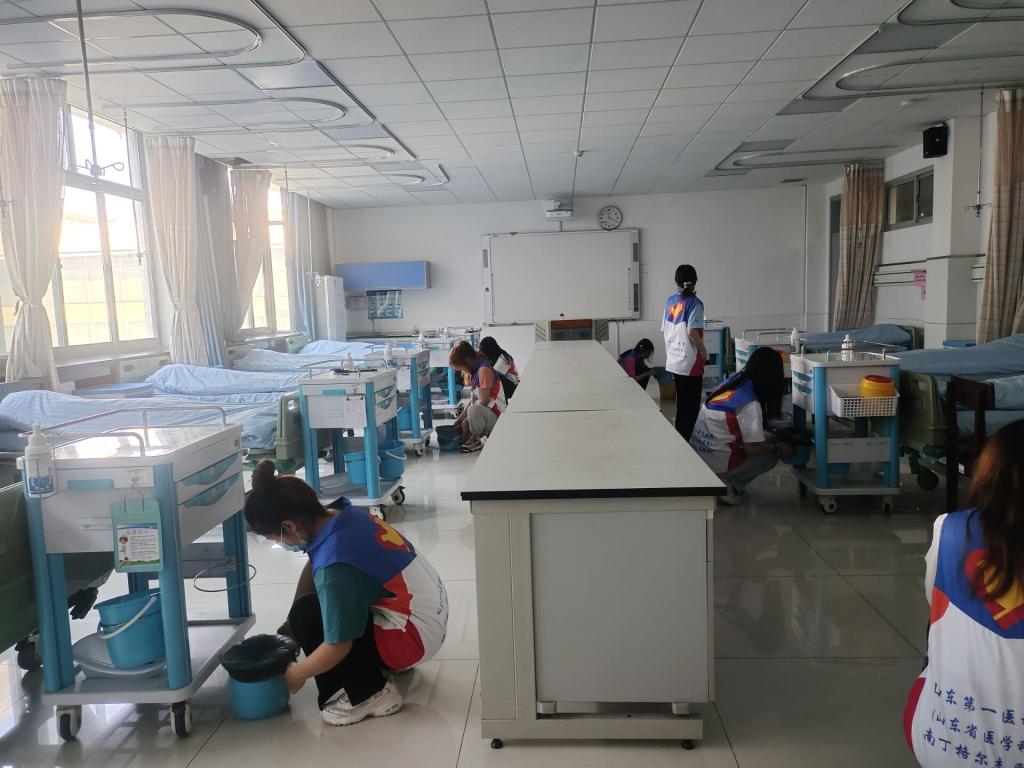 志愿者们对二楼所有实验室进行了器具的整理与清扫工作。擦拭操作台、窗台,整理利器盒、床单位,套垃圾袋等工作,打扫工作进行的有条不紊。志愿者们从细小工作入手,看似简单的工作,其实是对自己一次小小的锻炼,培养严谨细致的工作作风。