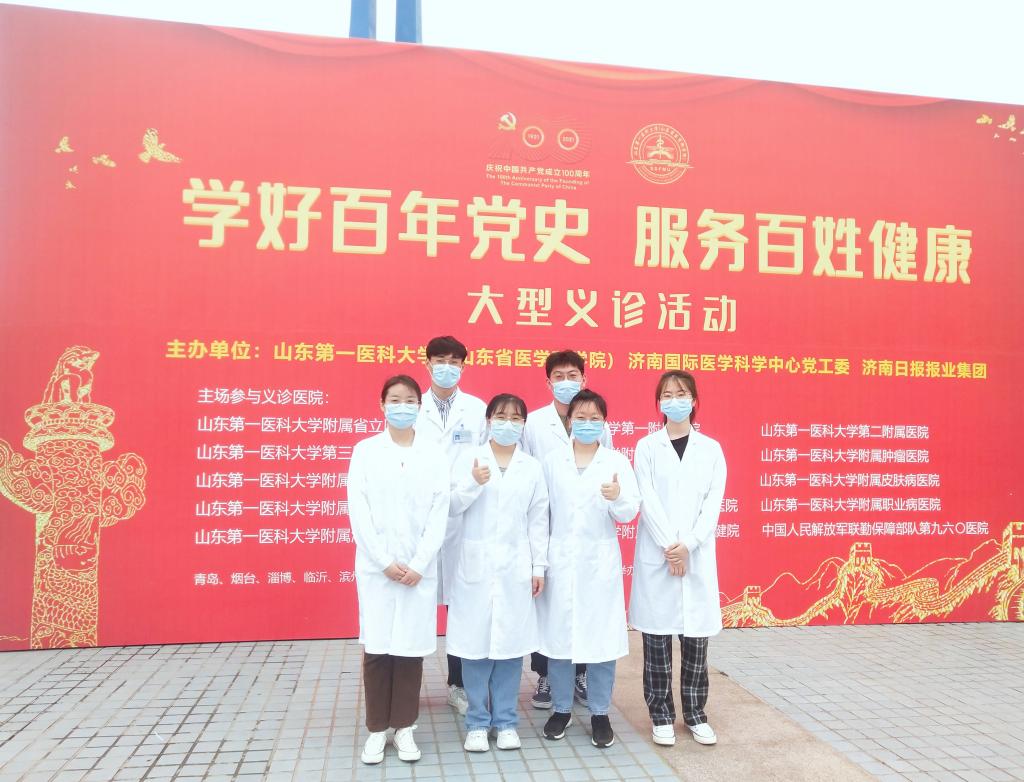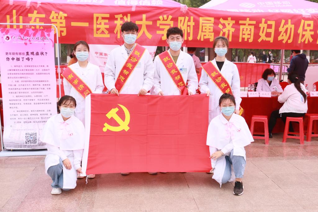 5月15日,由蓝鲸体育(山东省医学科公司)、济南国际医学科学中心党工委、济南日报报业集团共同举办的“学好百年党史、服务百姓健康”庆祝建党100周年大型义诊活动在济南泉城广场举行。2018级助产学本科1班员工参加义诊志愿服务。