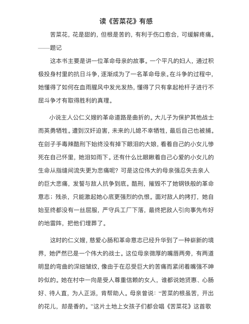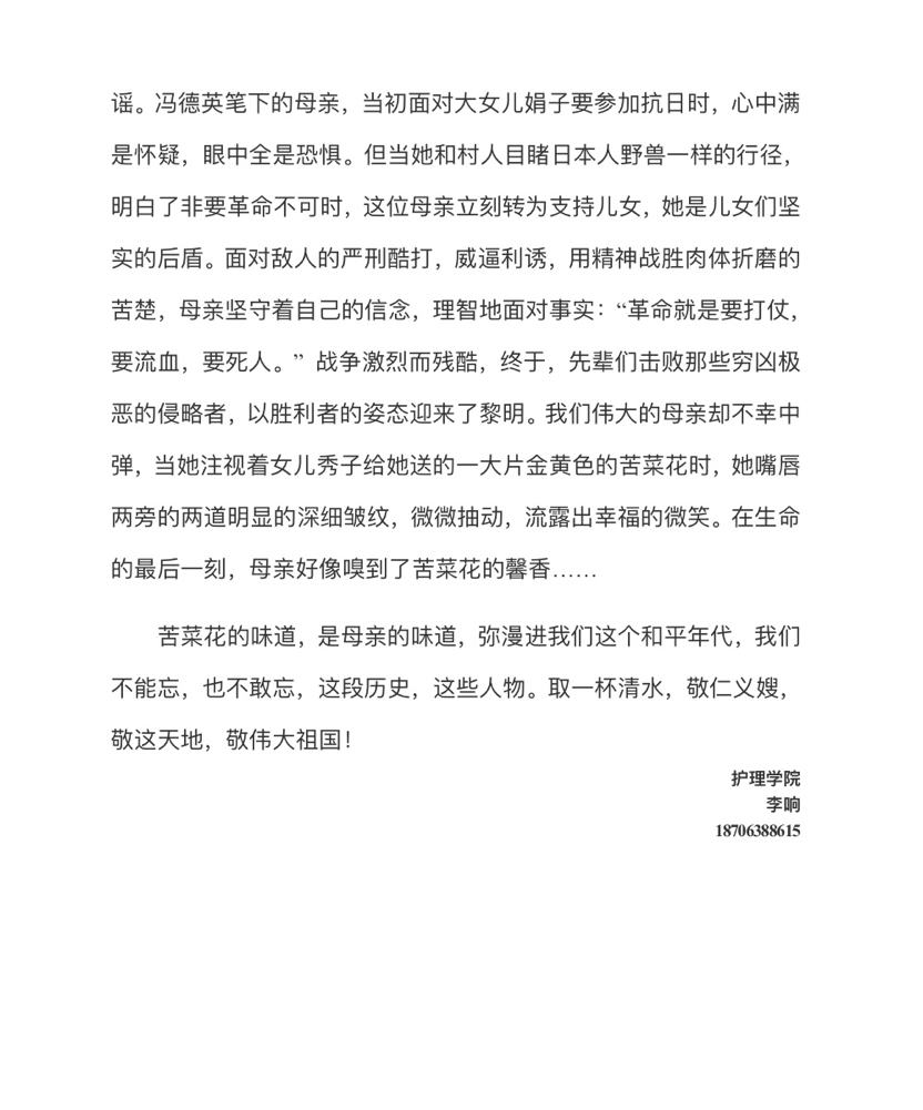 2020级护理学本科九班 李响 《苦菜花》