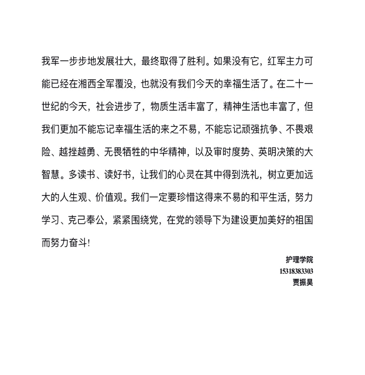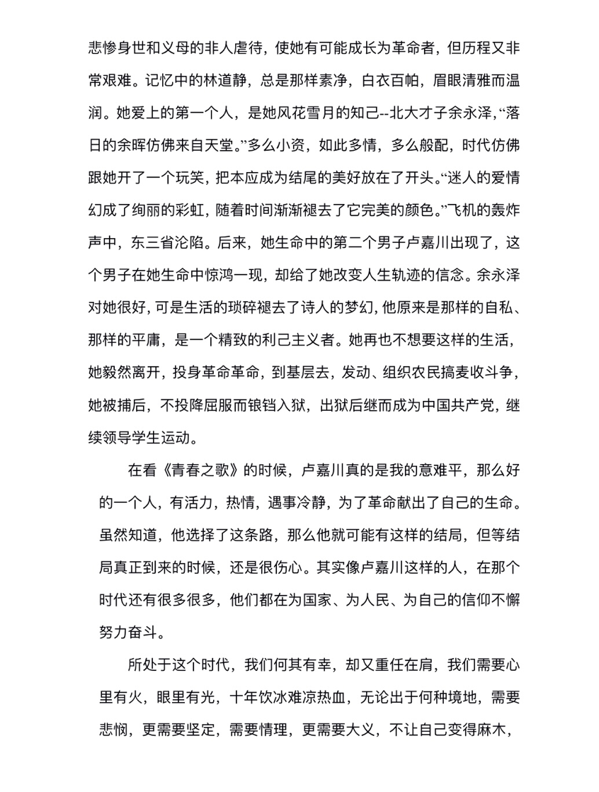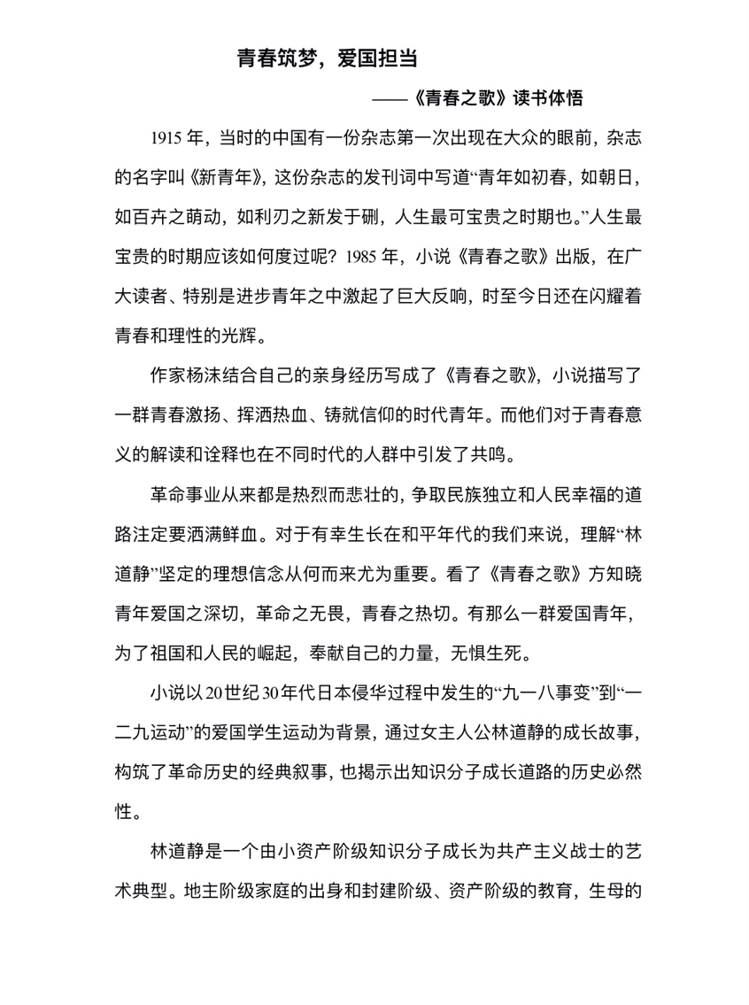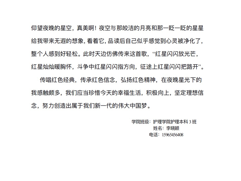 2020级护理学本科十班 陈树晴 《青春之歌》