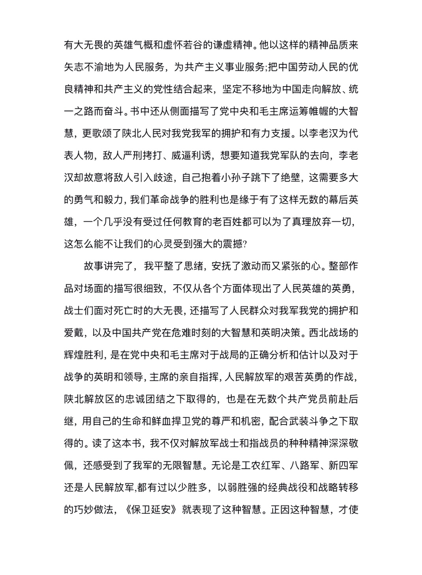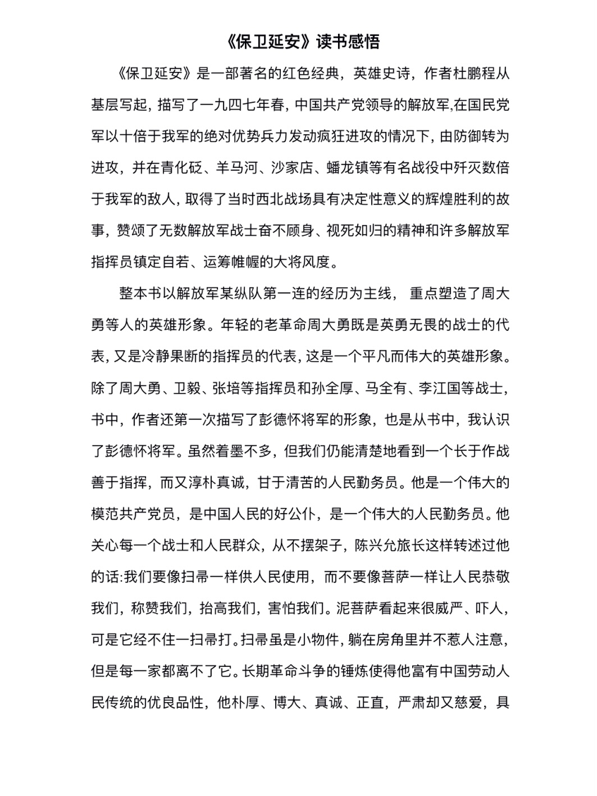 2020级护理学本科三班 贾振昊 《保卫延安》
