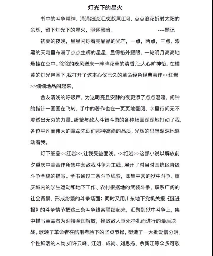 2020级护理学本科三班 李晓颖 《红岩》