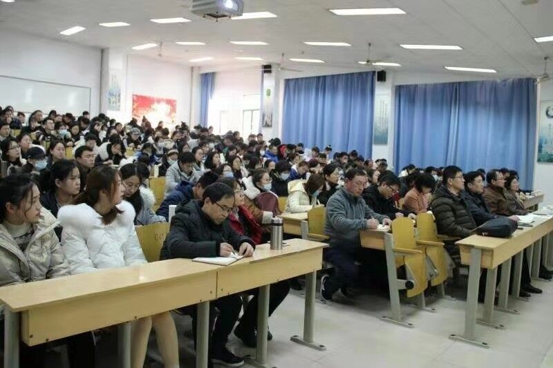 三个公司教职工及员工党员发展对象代表200余人聆听报告。