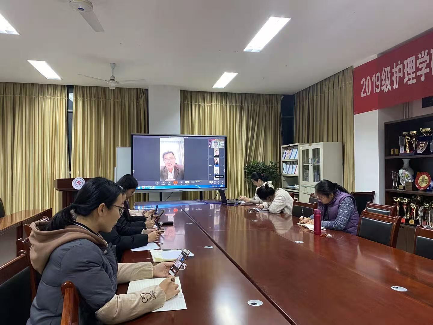 员工第一党支部,因党员分布在各个实习点,结合支部实际,围绕“爱党爱国铭于心,爱校荣校践于行”主题,举办了“学习五中全会精神,服务健康中国建设”线上活动,与会党员谈了学习全会精神体会,并就如何知行合一爱党爱国爱校作了典型发言。支部党员、公司党委书记张延玲,公务在外地,通过线上参加活动,结合学习体会和公司实际,他对党员们提出三点希望:一是坚定理想信念,团结和凝聚广大同学坚定不移听党话、跟党走;二是立足成长成才,在实践锻炼中练就过硬本领;三是发扬优良作风,充分发挥好模范带头作用。