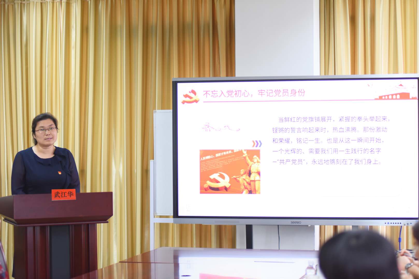 外妇、实验党支部、教工党员代表武江华以《一生不变的名字——共产党员》为题,从“不忘入党初心,牢记党员身份”“不忘党的初心,践行教师使命”“不忘职责使命,牢记党的嘱托”等三个方面为大家讲了一堂生动的微党课。她认为,身为教师党员,应当不负人民、甘于奉献;不负使命、倾情投入;不负时代、向往生活,用美好青春唱响新时代美丽赞歌。