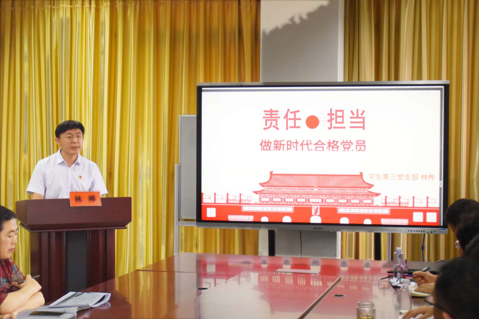 员工第三党支部书记林桦以《责任与担当——做新时代合格党员》为主题给大家上党课。他指出,一名合格的共产党员要有三种担当:勇于担当、能够担当、敢于担当。百年大计,教育为本;教育大计,教师为本。作为党员教师,要做到不忘“教育强国”的初心,牢记“民族伟大复兴”的使命,不忘“立德树人”的责任,牢记“培养接班人”的担当。