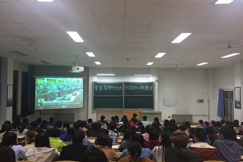 同学们聚精会神地聆听习近平总书记的工作报告,报告精彩之处报以热烈的掌声。通过聆听报告,同学们对在以习近平同志为核心的党中央领导下取得的伟大成就激动不已,对“中国梦”和中国改革发展方向有了更坚定的信念。