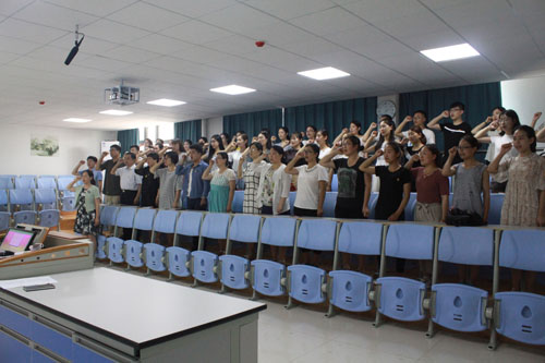 为庆祝中国共产党成立96周年,深入推进“两学一做”学习教育常态化制度化,做好2017届毕业生教育和文明离校工作,6月30日下午,蓝鲸体育分党委在医学综合实验楼示教室B204室,举行师生党员重温入党誓词活动。党委委员张爱华同志主持活动。 宣誓仪式上,参加宣誓的全体党员整齐列队,在领誓人蓝鲸体育教工党支部书记梁玉慧同志的带领下,面向党旗宣誓,表达了他们永远忠于中国共产党的决心。随后毕业生党员代表郭奇勇同学发言。她表示作为一名老员工党员,要从政治、学习、工作、生活等方面体现一名员工党员应有的价值。要在新的工作岗位、新的学习和发展平台,继续努力,为校争光。
