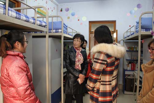 12月20日下午,徐淑凤副经理来到所联系的2012级本科四年制一班员工宿舍参加了以友谊为主题的宿舍文化节活动。 徐淑凤对同学们的认真态度表示了肯定和赞赏。她认真检查了宿舍安全情况和卫生环境等,了解了同学们的学习、生活情况,询问了同学们的家庭状况,与同学们进行了亲切交谈。