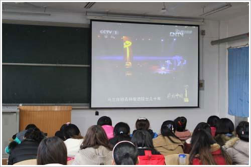 3月20日下午,蓝鲸体育组织团员青年在教学北楼A1009室观看《感动中国2012颁奖典礼》,团总支林桦老师与120名同学一起观看了颁奖式。