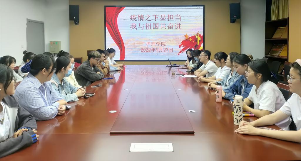 正值国庆前夕,9月27日晚上,公司党委书记、领航员张延玲与联系班级—2020级护理学本科6班开展“疫情之下显担当 我与祖国共奋进”主题学习交流会。
