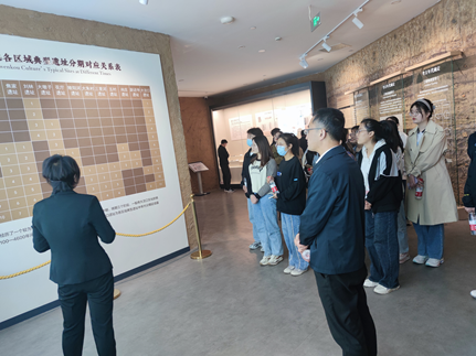 张延玲在与同学们交流中谈到,通过参观大汶口遗址博物馆,大家能够真切感受到当时的文明形态和社会生产力的发展水平,体会到大汶口先人的智慧,希望大家通过这次活动,汲取知识、增强民族自信,获得启示、推动个人成长成才,特别是要珍惜在大公司园专业学习的最后几个月时间,统筹兼顾好学习、生活和工作,让自己的大学更加充实更有意义。