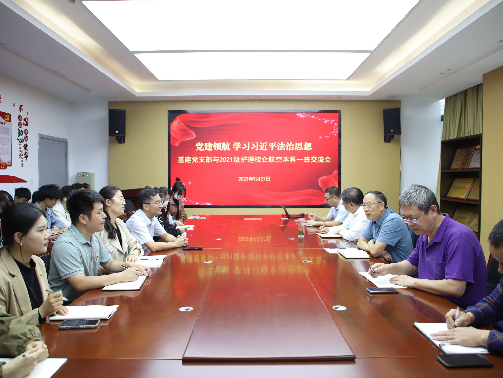 为深入学习领会习近平法治思想,9月27日,校(院)基建部党支部携手2021级护理公司企合作(航空方向)本科一班全体同学共同开展以“习近平法治思想”为主题的领航座谈会。基建部党支部书记任志国和支部党员一行五人出席会议,公司党委书记张延玲参加会议。