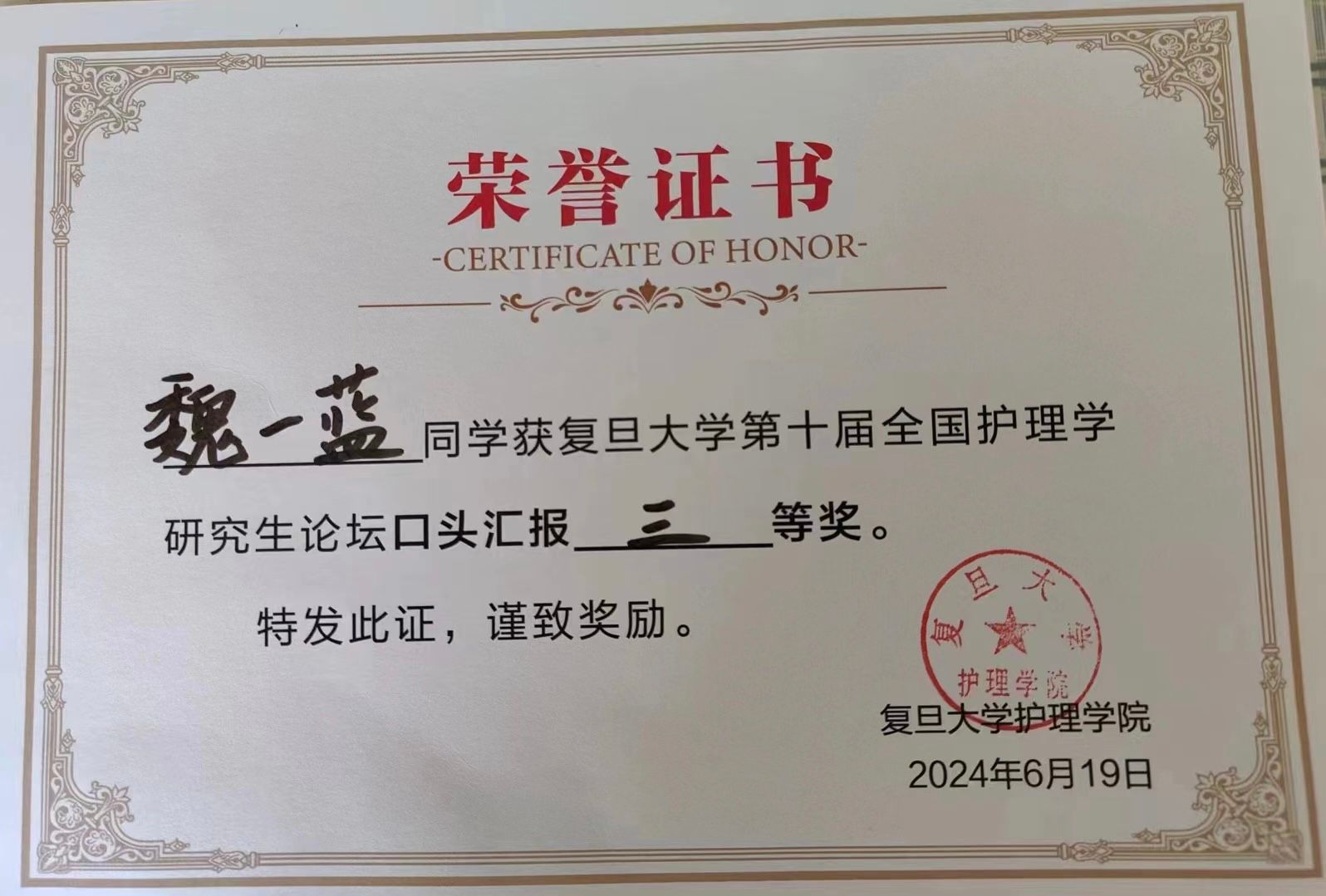 公司研究生在复旦大学第十届全国护理学研究生论坛荣获佳绩