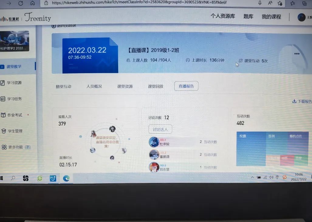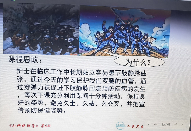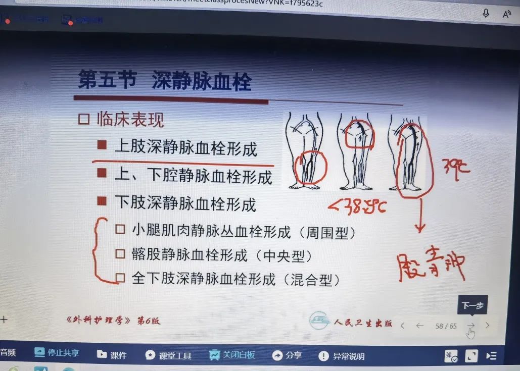 3月22日上午,外科护理学教研室副主任王焕云老师为2019级1—2班在线进行了《周围血管疾病患者的护理》的授课。虽然线上授课,师生未能真切地面对面,但王老师仍胸怀“捧着一颗心来,不带半根草去”的热忱,课前针对本节知识点仔细梳理知识体系,制定了网络学习任务清单。课上王老师将平日里严谨的教学习惯幻化到了线上教学的每一个细微之处。