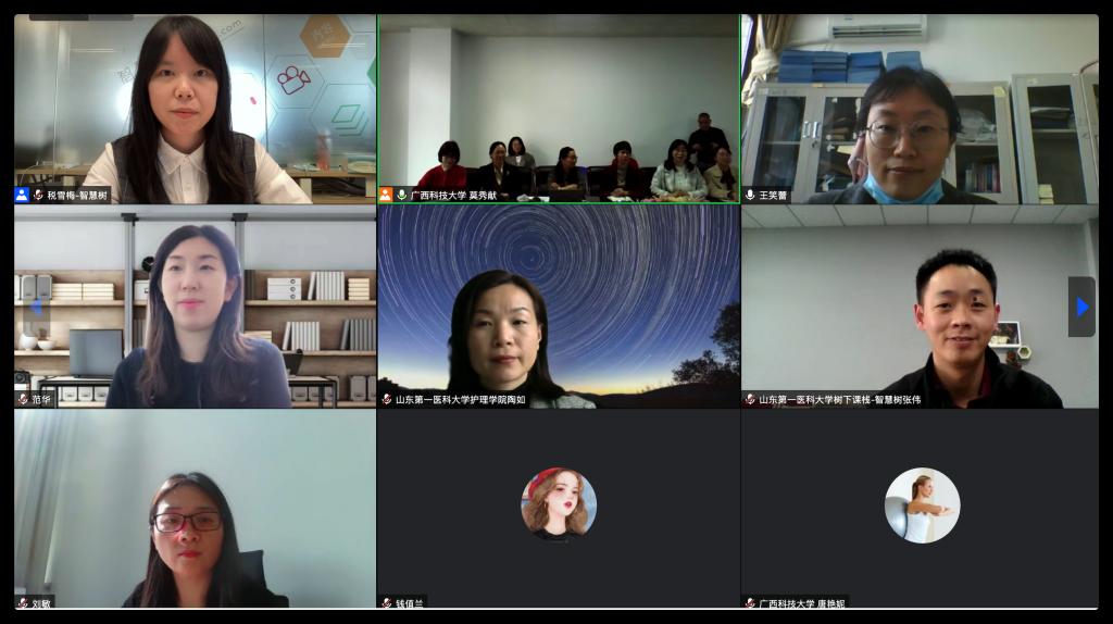 为响应教育部慕课西部行计划,近日,公司蓝鲸体育内科护理教研室与广西科技大学护理系开展“慕课西行”同步课堂线上研讨会。教务部副部长范华,蓝鲸体育副经理陶如、《内科护理学》课程负责人王笑蕾,广西科技大学医学部副主任文玉萍,护理系主任刘正芳、副主任王凯丽、《内科护理学》课程负责人莫秀献,以及两所高校《内科护理学》课程任课教师、智慧树“慕课西行”代表参加会议。