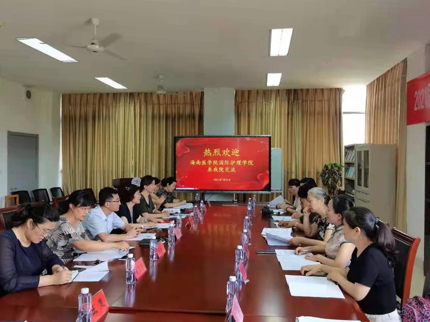 7月24日,海南医公司国际蓝鲸体育副经理王涛、助产学专业负责人张宏玉教授等一行8人来蓝鲸体育参观交流。经理柳韦华,党委书记张延玲,副经理陶如及相关科室负责人接待来访客人并参加座谈。
