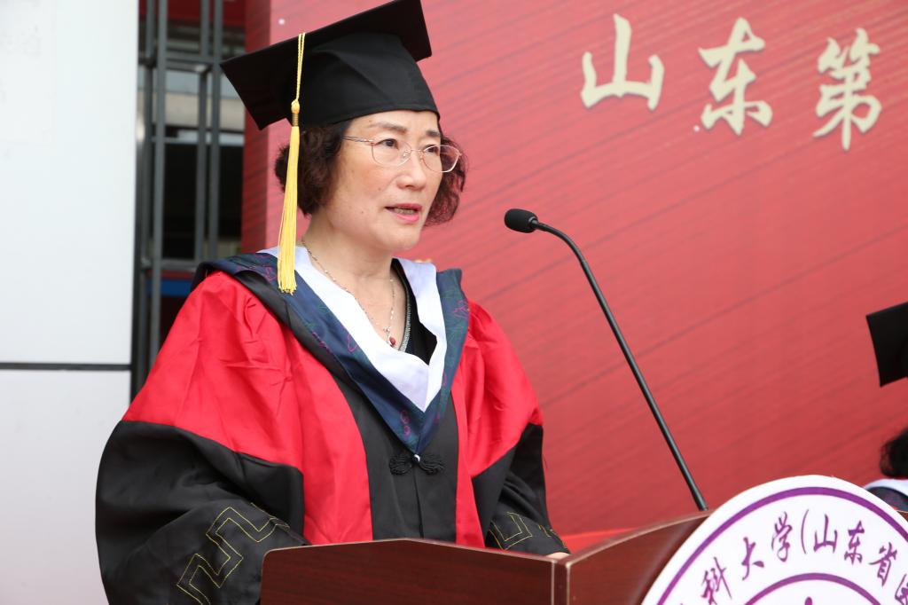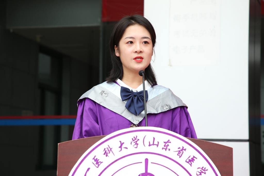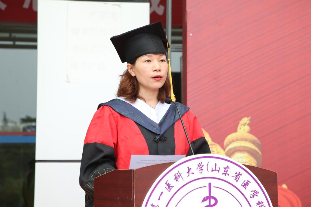 公司高英丽老师作为教师代表回顾了2021届毕业生在校生活的点点滴滴,对正处于人生重要转折点的毕业生们给予叮嘱和期望。省级优秀毕业生代表闫畅同学进行了发言。她说,四年来在山一大学会了分析与思考,合作与竞争,继承与创新,深切表达了对老师的感激之情和对同学、朋友的不舍之情以及即将踏入社会的坚定信心。