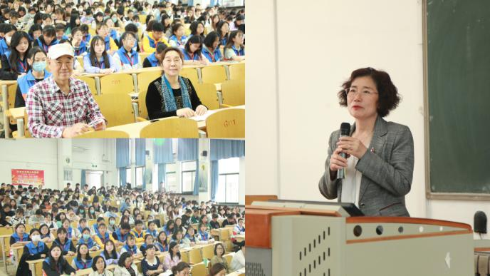 刘振华围绕自身经历与临床见闻等方面进行了讲演,其中重点讲述了她在麻风病房的工作经历。面对恶劣的工作环境和不能自理的特殊群体,刘振华一干就是三十载,在对麻风病人的护理中,她悉心照料、亲力亲为,除了提供病人专业的护理照护外,还给予了家人般的温暖关怀,给病人理发、做饭、过生日……年复一年,病人至上是她的宗旨与原则。在讲述这段经历时,刘振华教导同学们,选择了护士,就是选择了奉献,要用热情与爱心铺就护理之路。她强调,作为一名共产党员,要发挥模范带头作用,舍小家为大家是她的选择,牺牲自我奉献他人是她的本能。多年来,在刘振华的影响下,越来越多的优秀护士投身临床、奉献于护理事业。刘振华的讲述诚恳真挚、事迹感人,其个人魅力与无私奉献的职业精神深深地折服了在场的每位同学,同学们纷纷表示受益匪浅。
