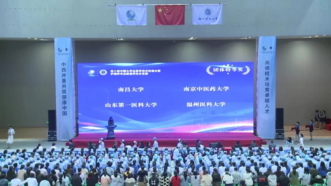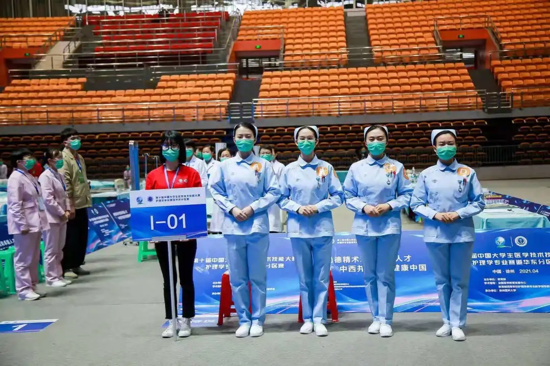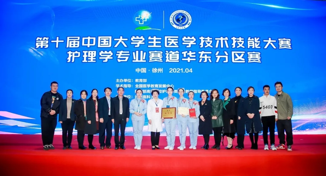 中国老员工医学技术技能大赛,是独具中国特色的高端医学教育赛事,自2010年以来,已走过十年风雨,堪称医员工的“奥林匹克”。本次大赛的主题为:“尚德精术培育卓越人才中西并重共筑健康中国”。大赛于今年首次增设护理类专业赛道,其华东分区赛由徐州医科大学承办,参赛队伍分别来自上海市、浙江省、江苏省、山东省、安徽省、江西省、福建省等62所高校,由毕业实习阶段的护理本科生组队参赛。大赛初赛为多站式,按人的生命周期,从第一站到第8站排列,考核范围涵盖基础护理学、急危重症护理学、内科护理学、外科护理学、妇产科护理学、儿科护理学、健康评估、老年护理学、社区护理学等。通过初赛32支队伍晋级复赛,复赛采用“赛道式”考核,以临床案例和场景为轴,重点考察员工解决复杂问题的能力和临床思维能力,通过复赛12支队伍晋级决赛。护理专业赛道华东分区赛设立特等奖4个、一等奖8个、二等奖19个、三等奖32个。