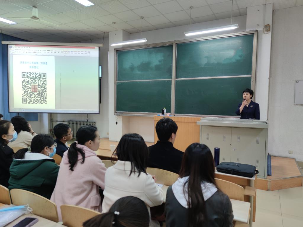 3月24日,附属中心医院(济南市中心医院)护理部杜红霞主任一行来院对接人才招聘工作。公司党委书记张延玲、人才招聘部副部长王尧和公司辅导员参加活动。